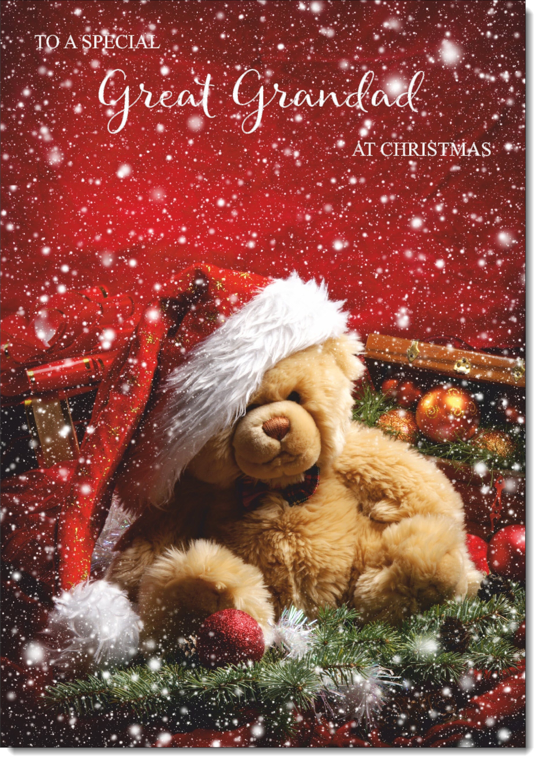 Great Grandad Christmas Card Teddy Bear in Santa Hat