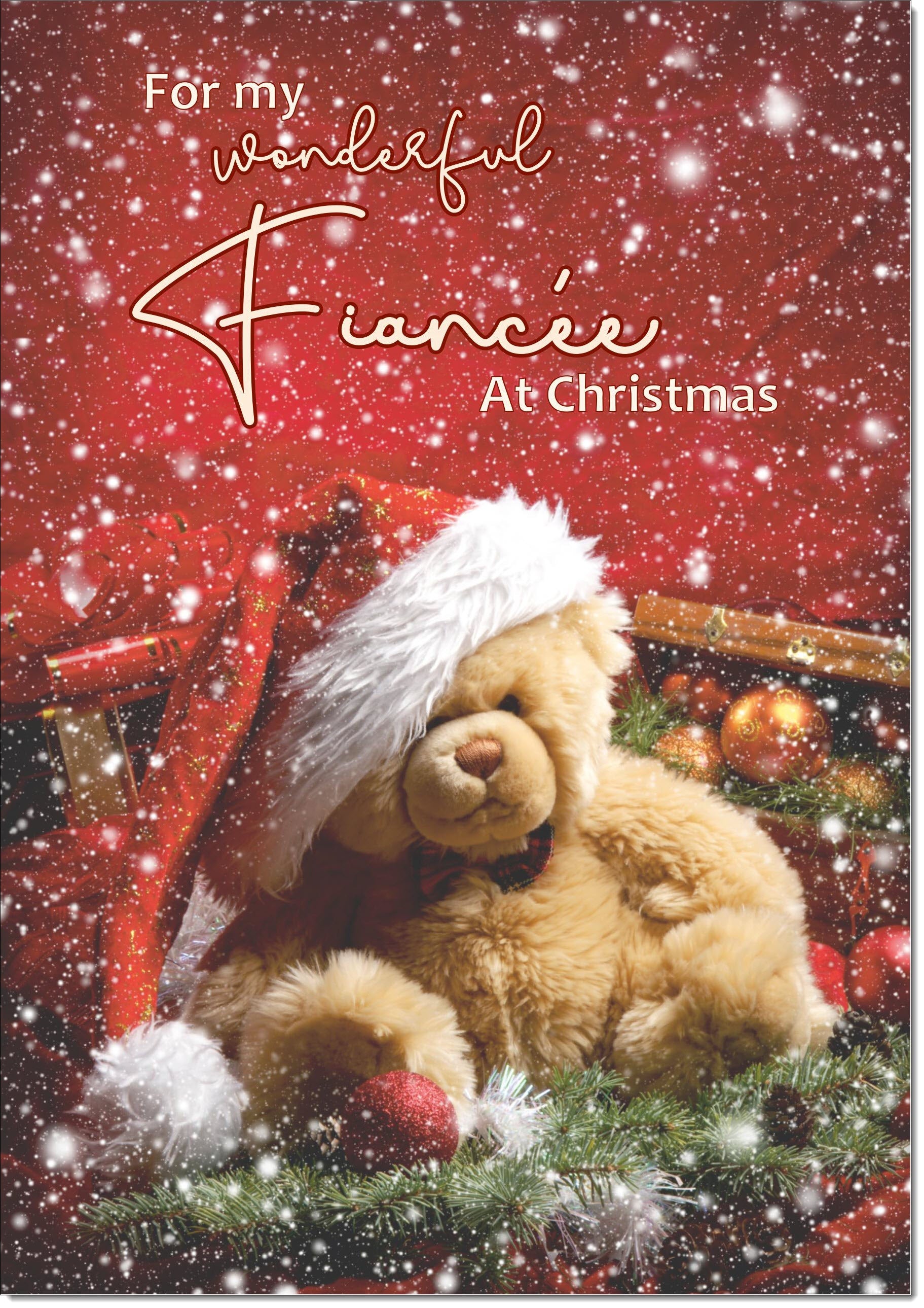 Fiancee Christmas Card Teddy Bear in Santa Hat