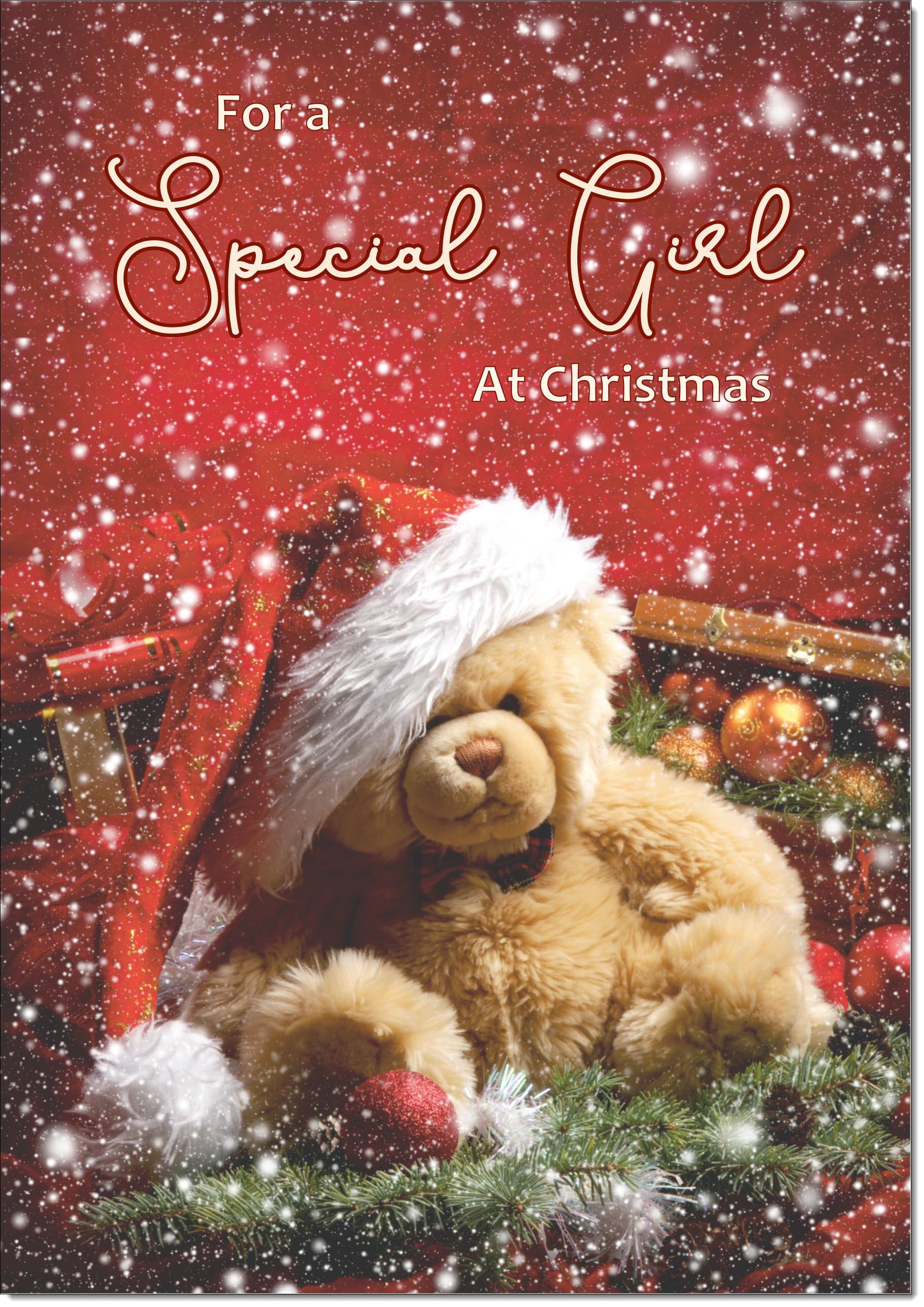 Special Girl Christmas Card Teddy Bear in Santa Hat