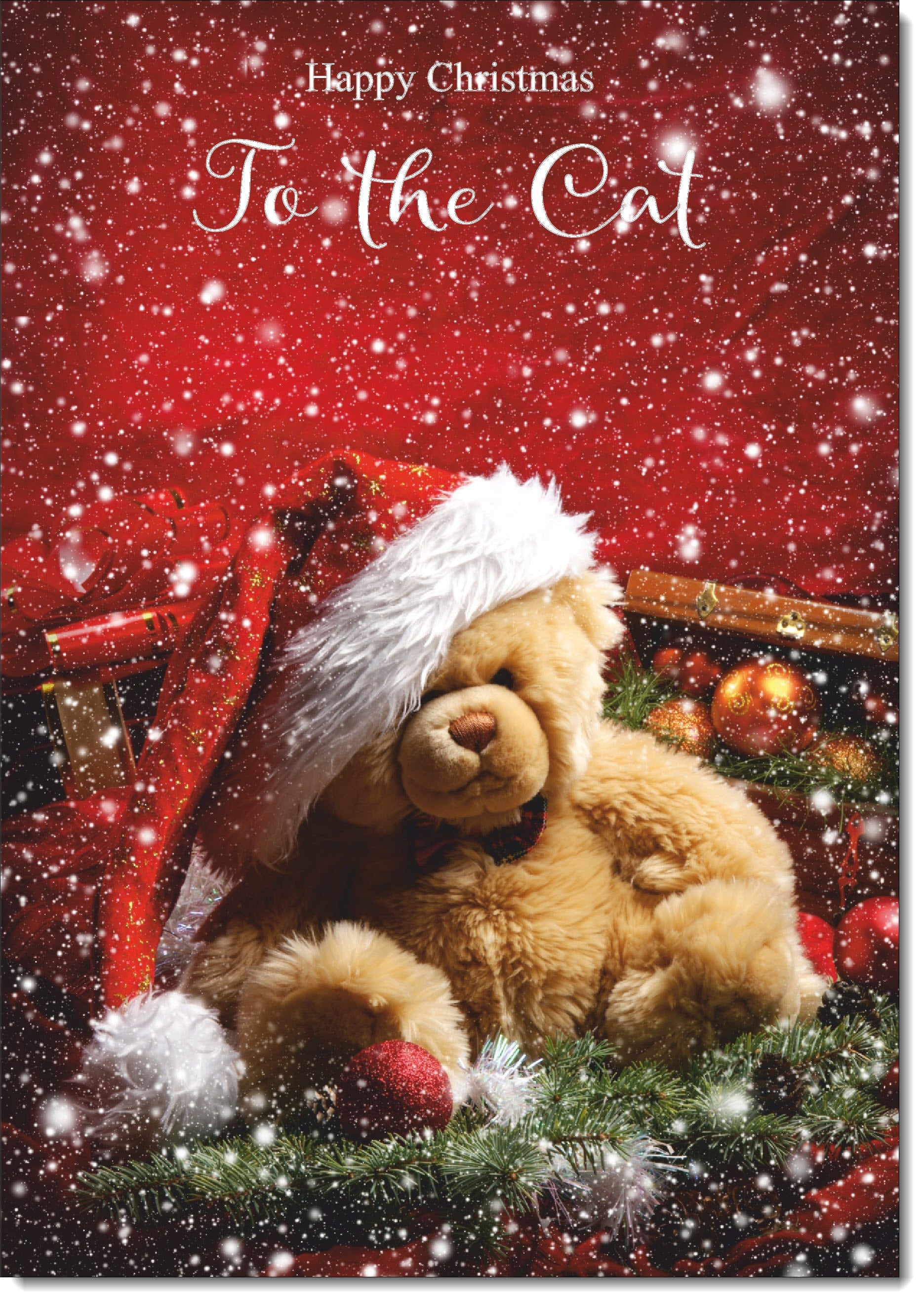To The Cat Christmas Card Teddy Bear in Santa Hat