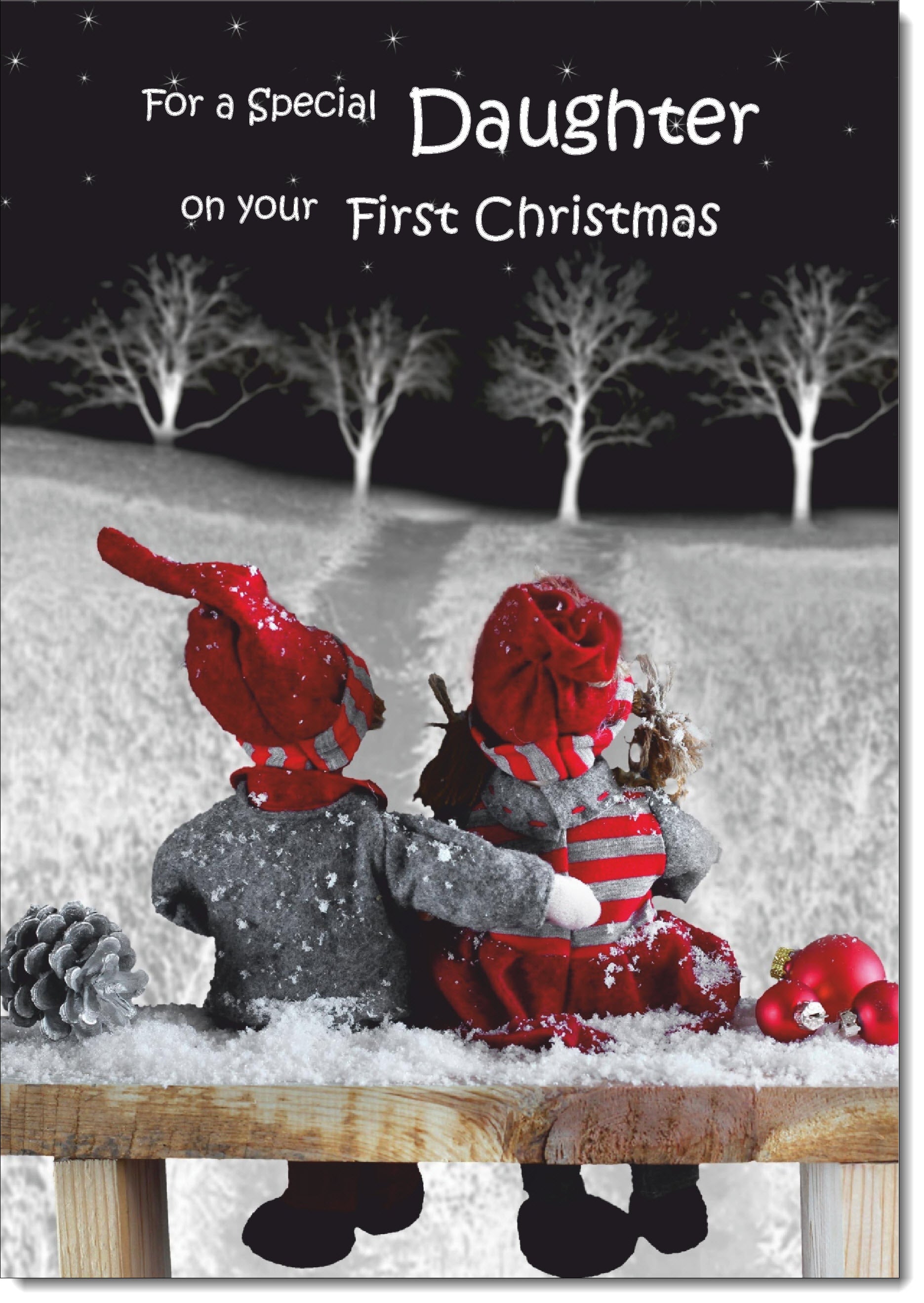 Daughter 1st Christmas Card Cute Couple on a Snowy Night