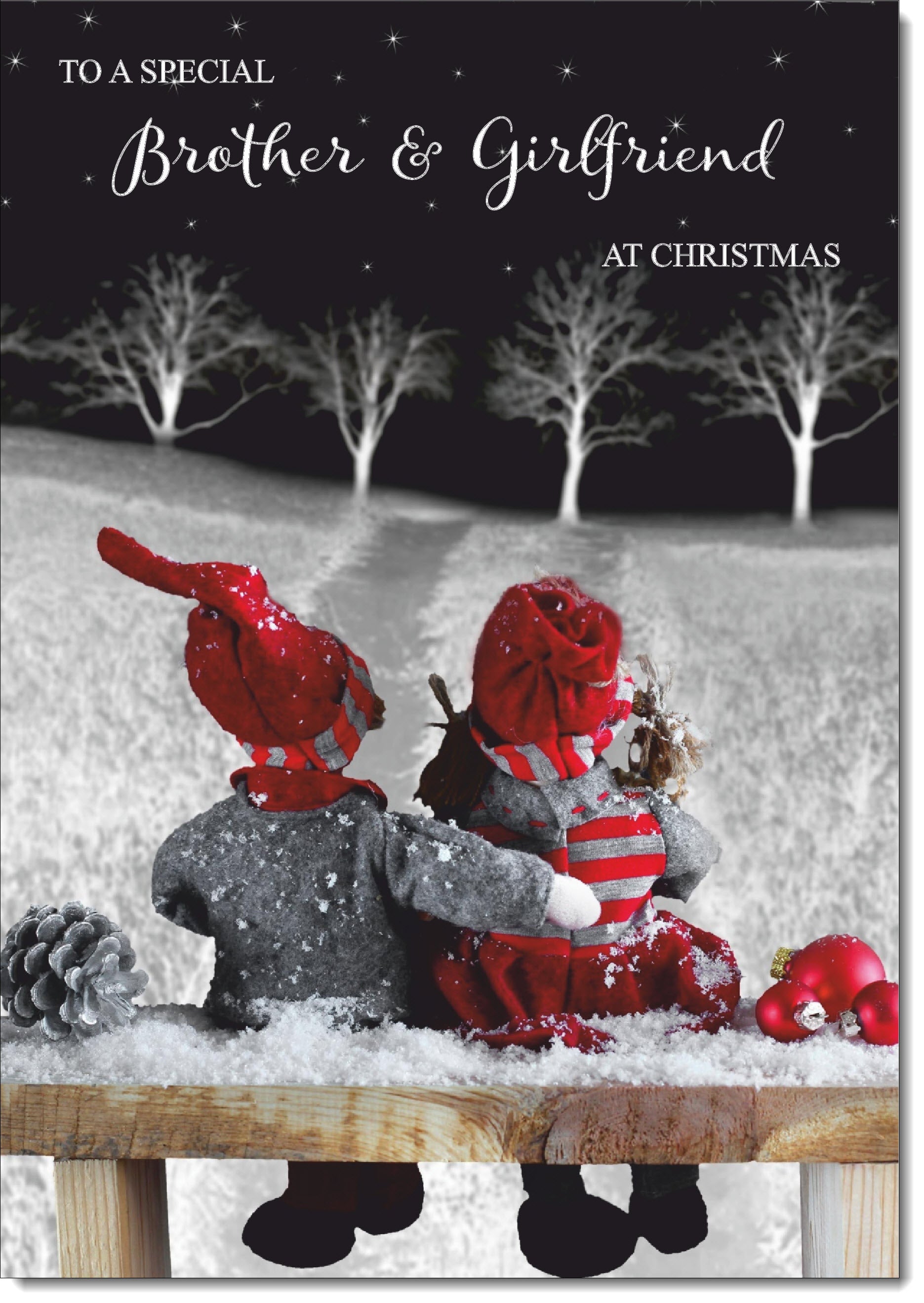 Brother & Girlfriend Christmas Card Cute Couple on a Snowy Night