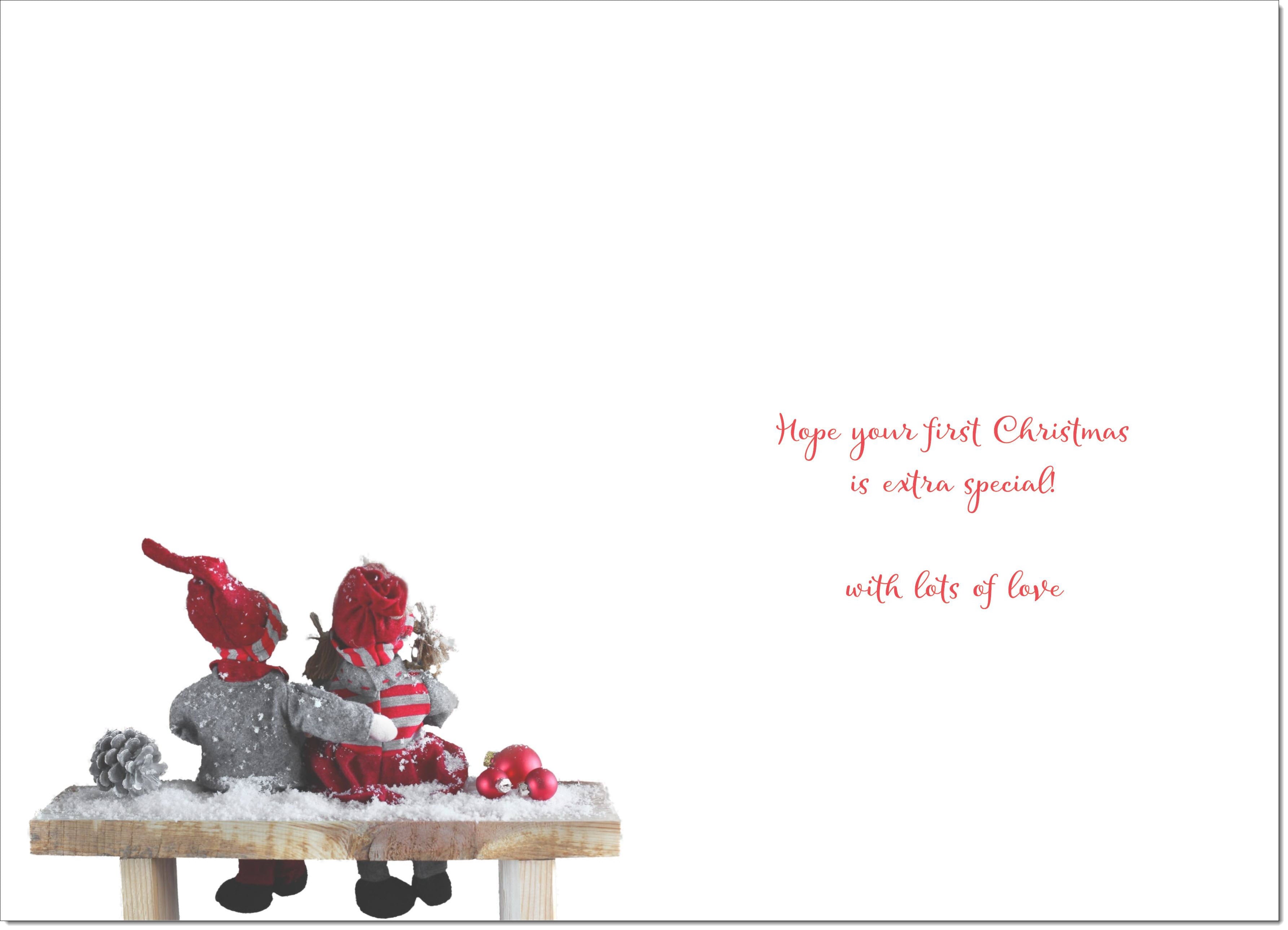 Babys 1st Christmas Card Cute Couple on a Snowy Night