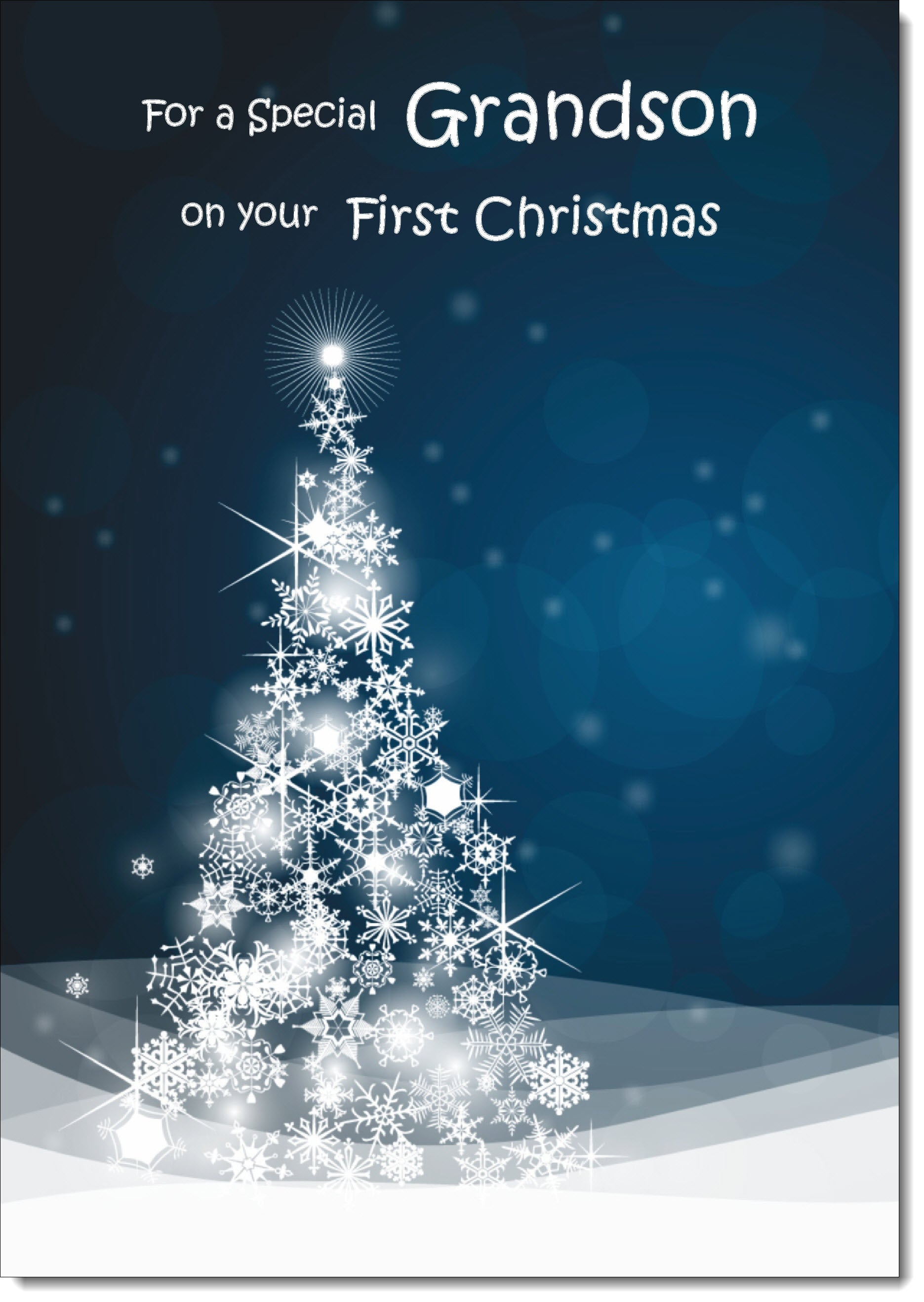 Grandsons 1st Christmas Card Blue Abstract Christmas Tree