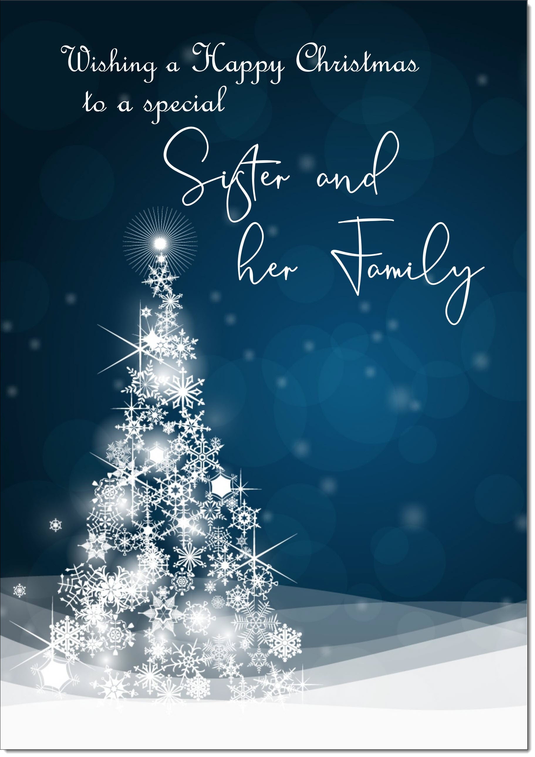 Sister & Family Christmas Card Blue Abstract Christmas Tree