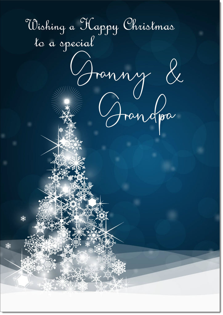 Granny & Grandpa Christmas Card Blue Abstract Christmas Tree