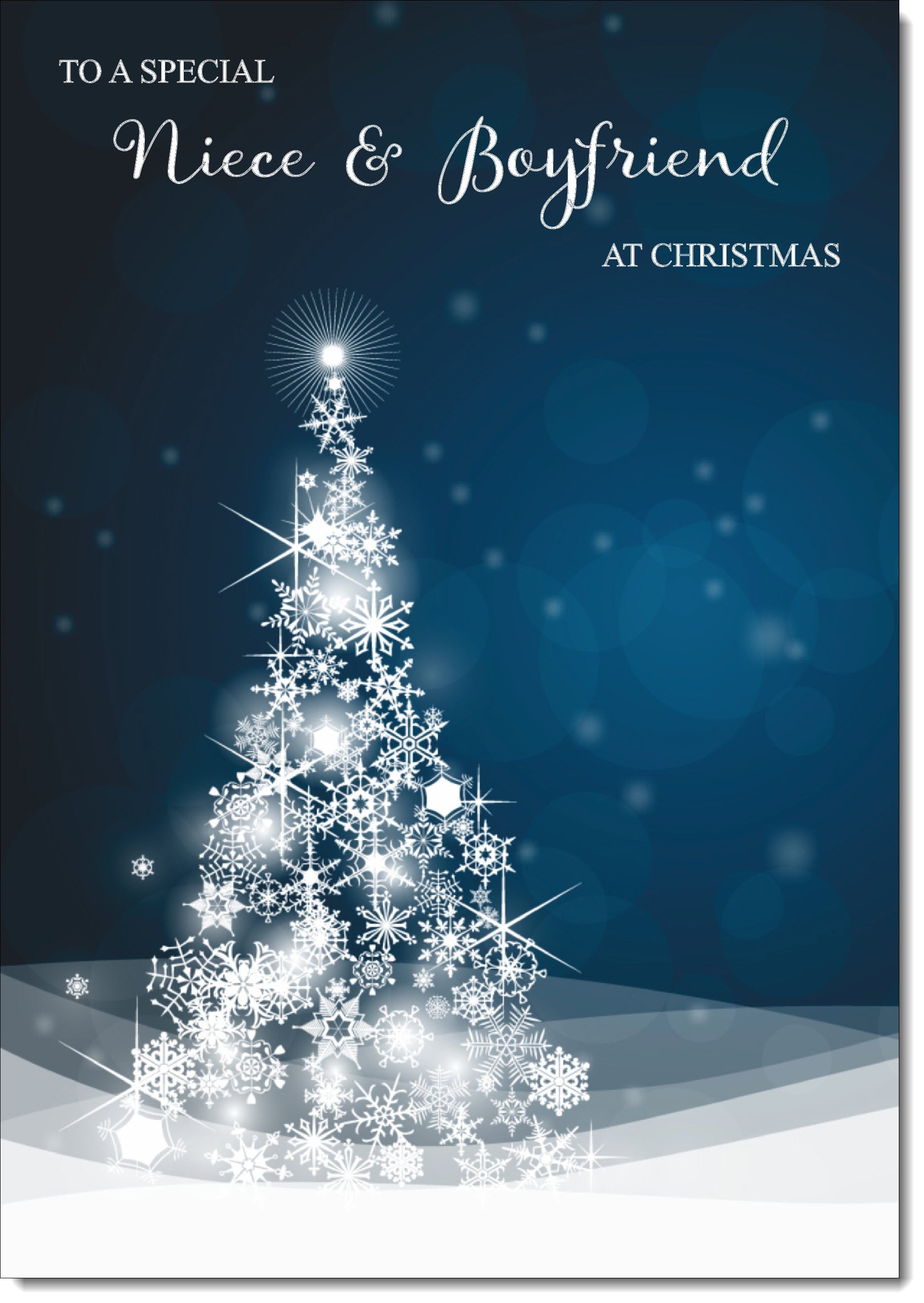 Niece & Boyfriend Christmas Card Blue Abstract Christmas Tree