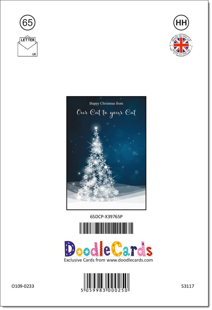 Our Cat To Your Cat Christmas Card Blue Abstract Christmas Tree