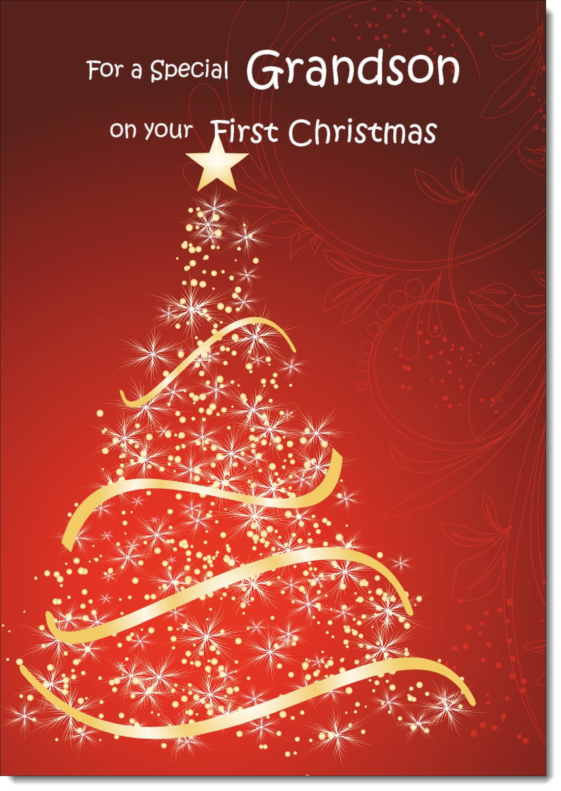 Grandsons 1st Christmas Card Red Abstract Christmas Tree