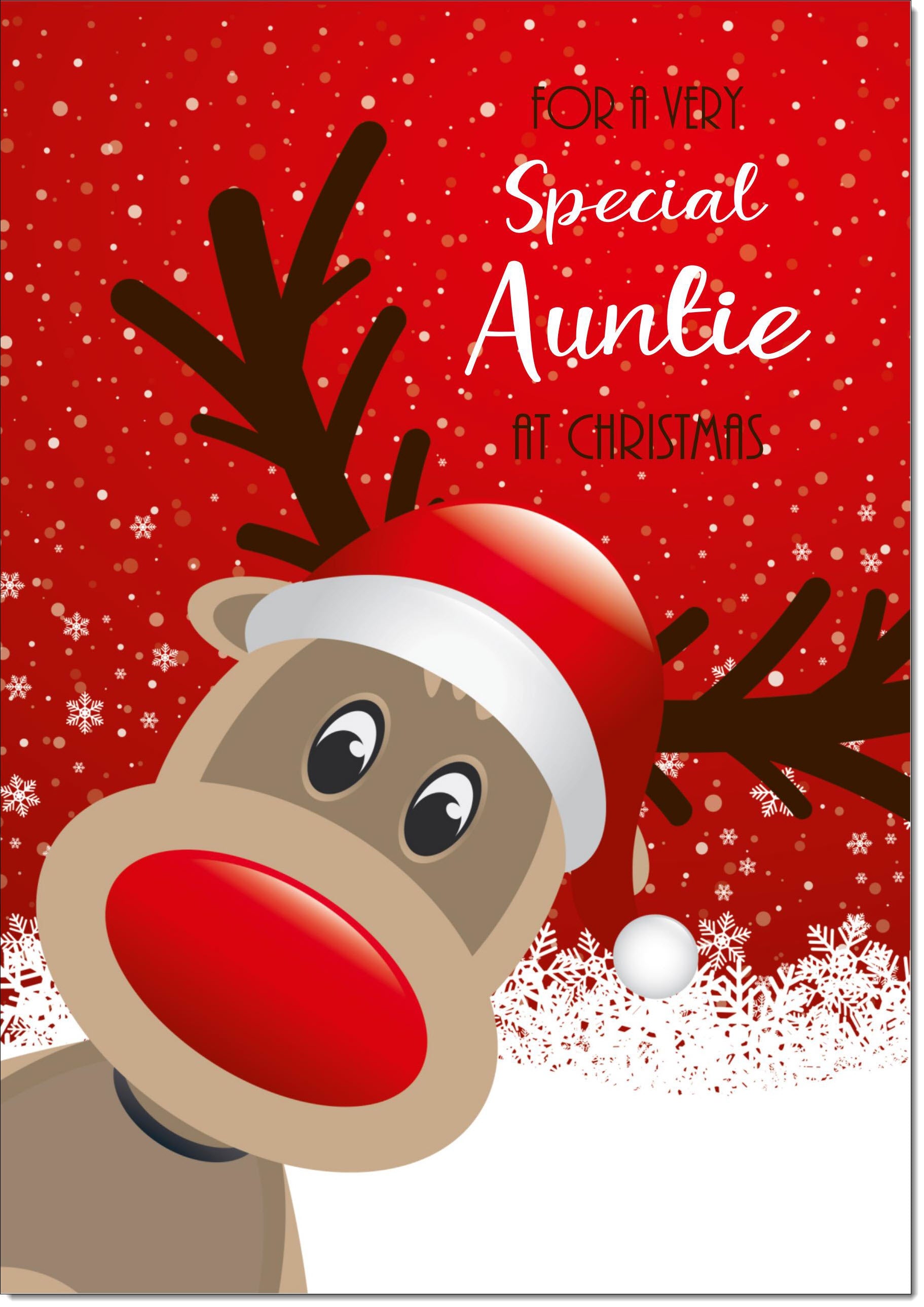 Auntie Christmas Card Rudolph in Snow
