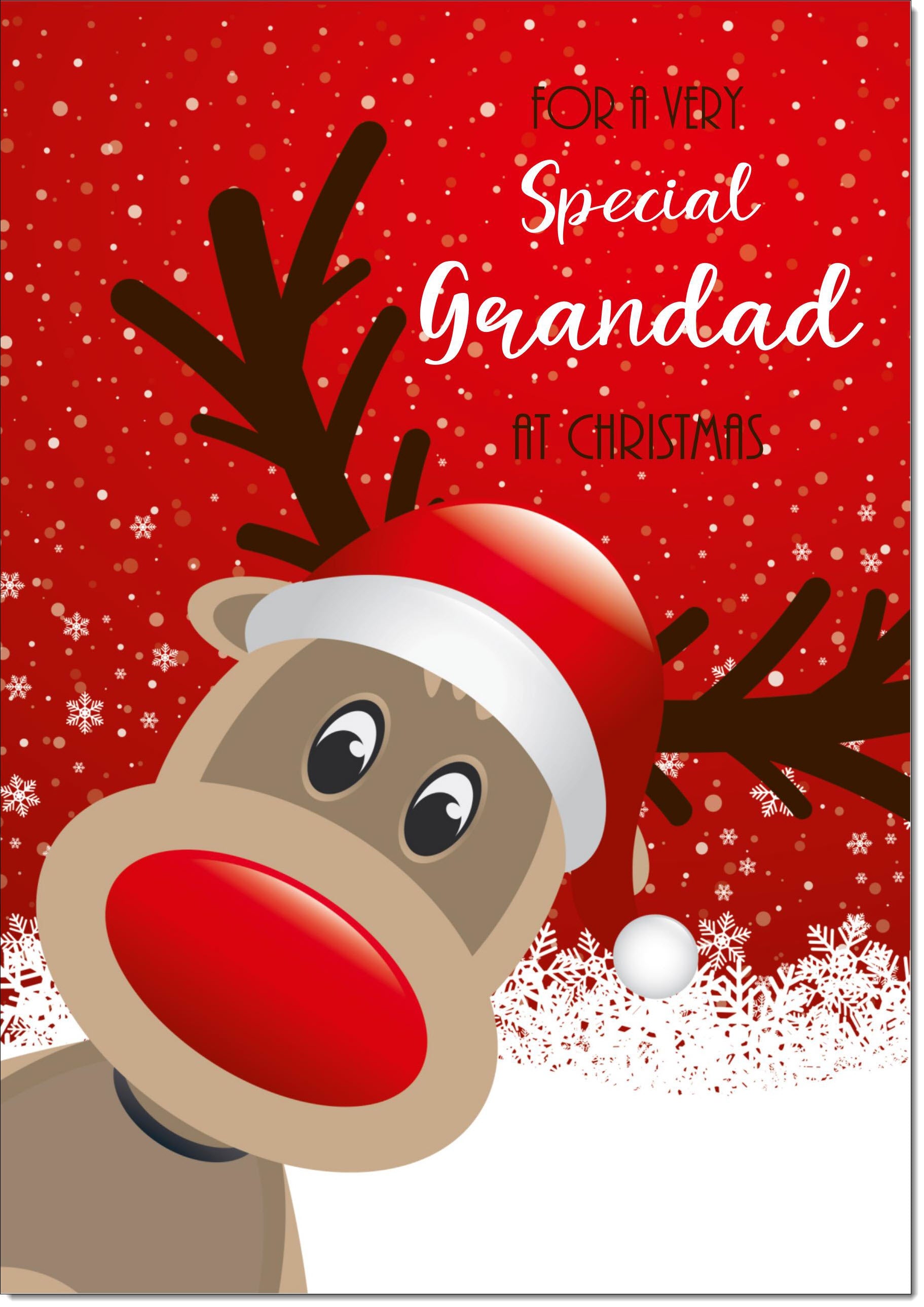 Grandad Christmas Card Rudolph in Snow