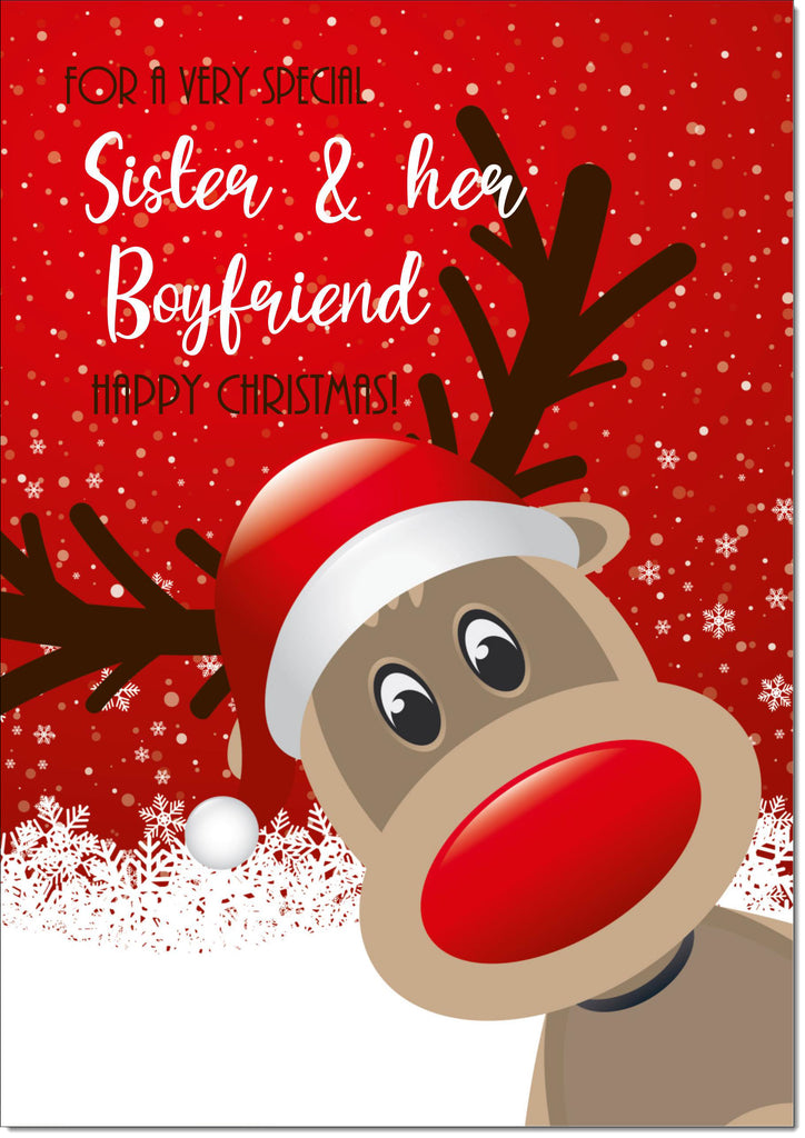 Sister & Boyfriend Christmas Card Rudolph in Snow