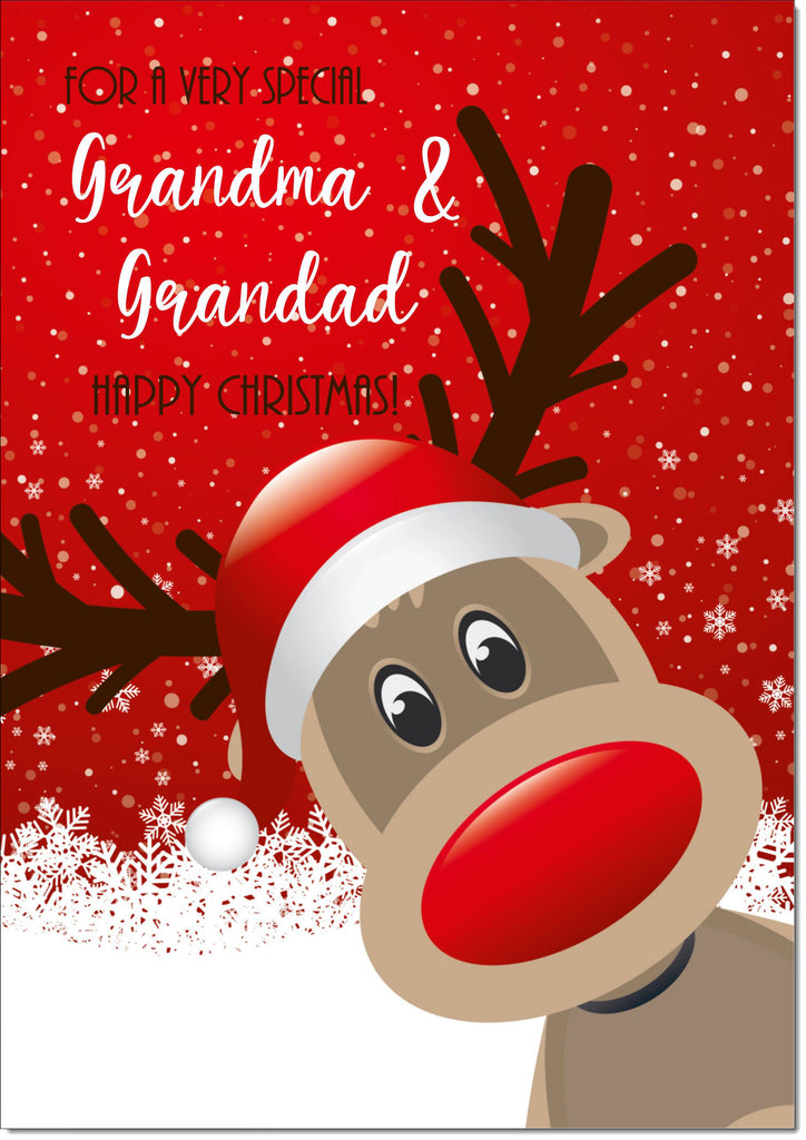 Grandma & Grandad Christmas Card Rudolph in Snow