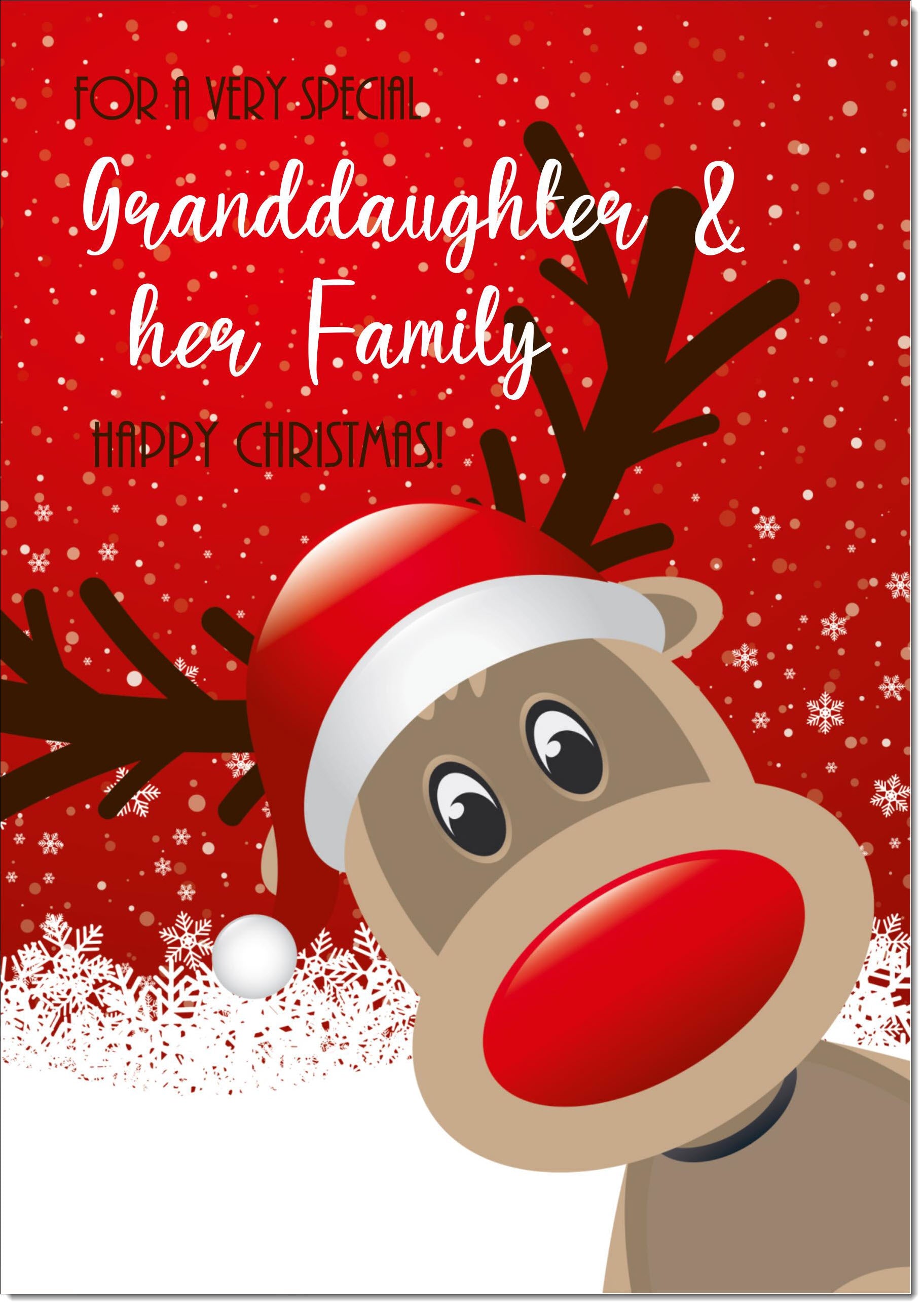 Granddaughter & Family Christmas Card Rudolph in Snow