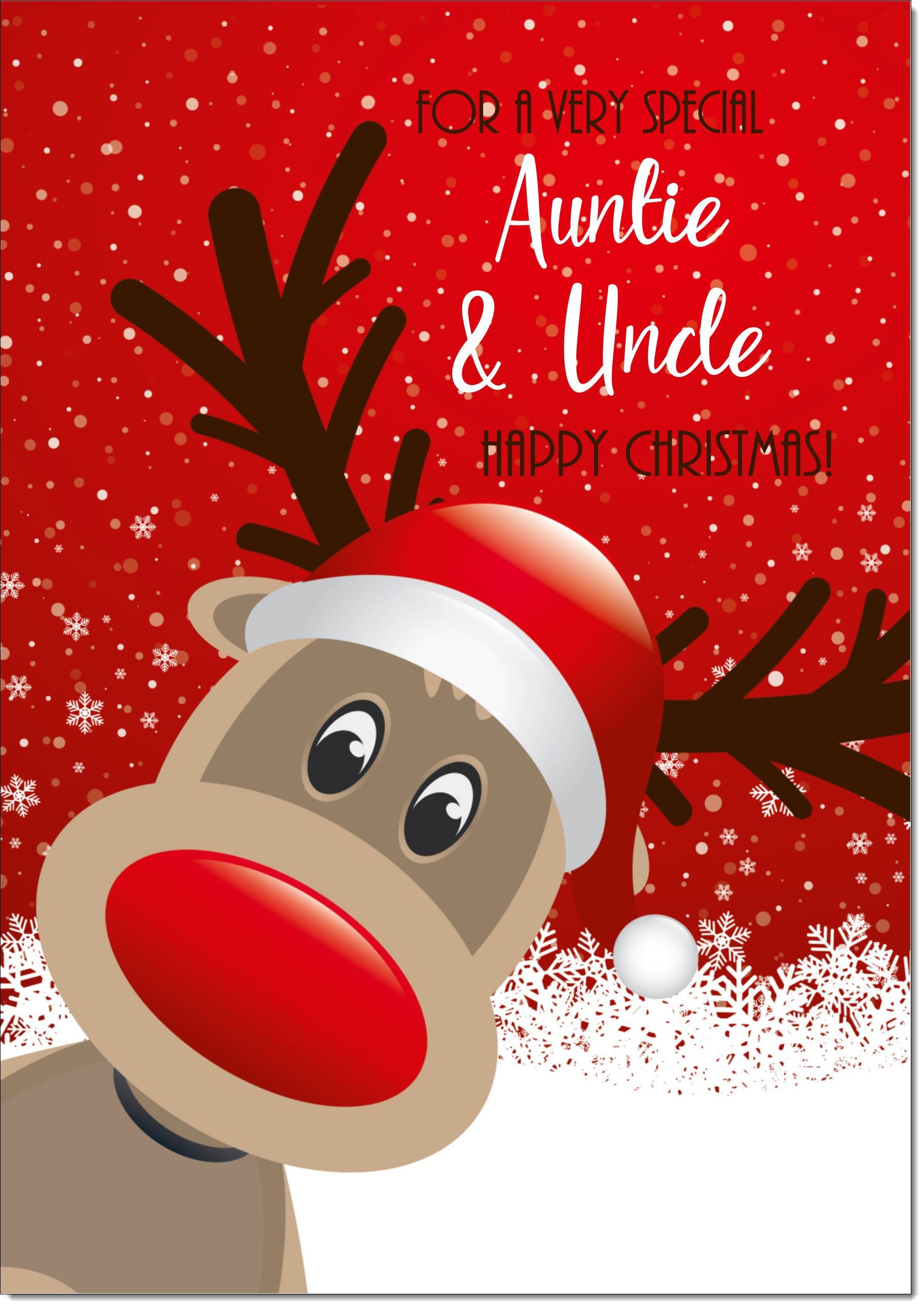 Auntie & Uncle Christmas Card Rudolph in Snow