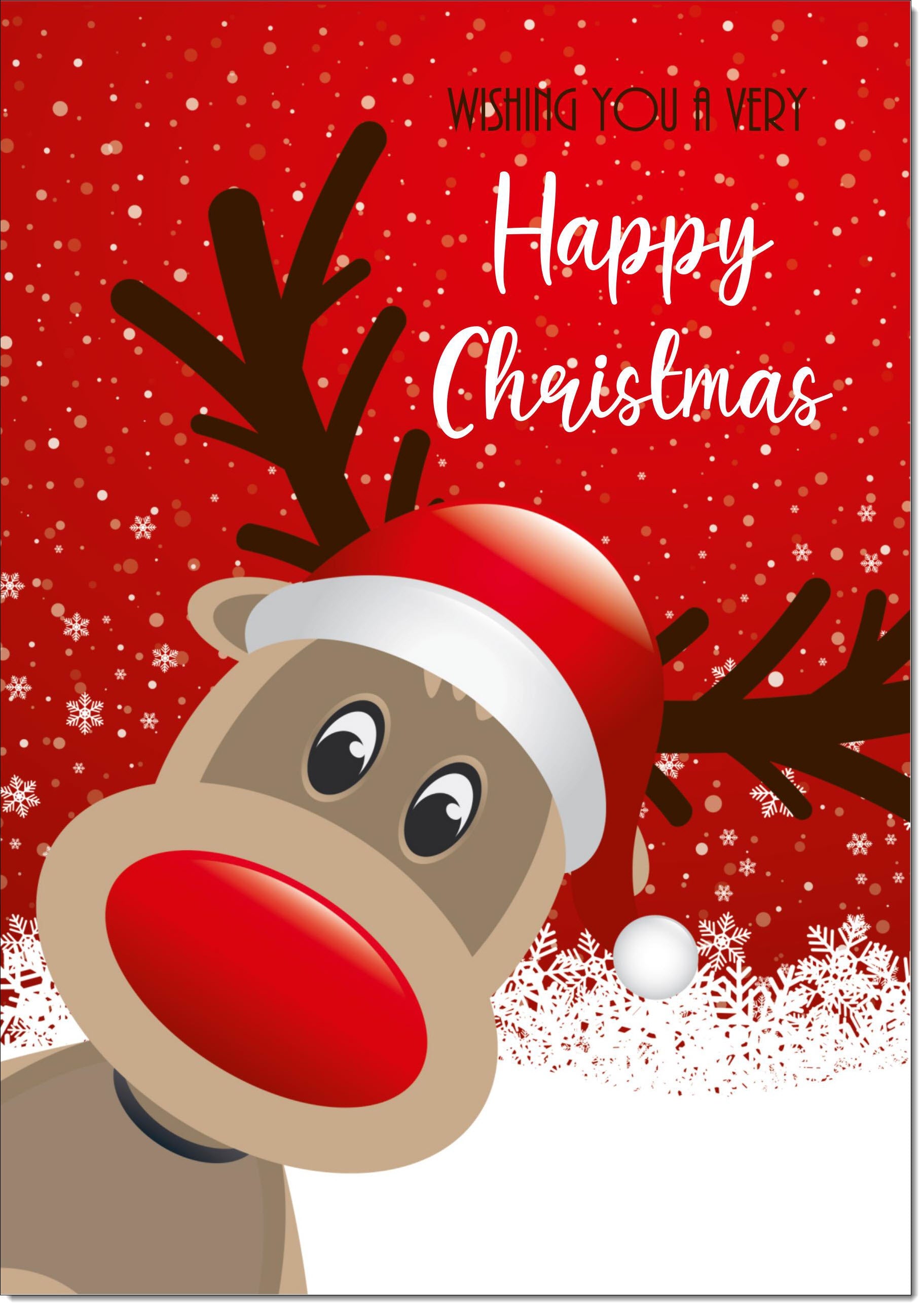 Happy Christmas Card Rudolph in Snow