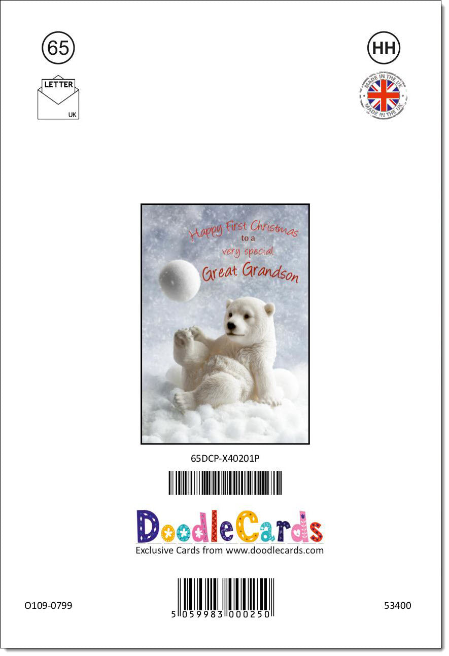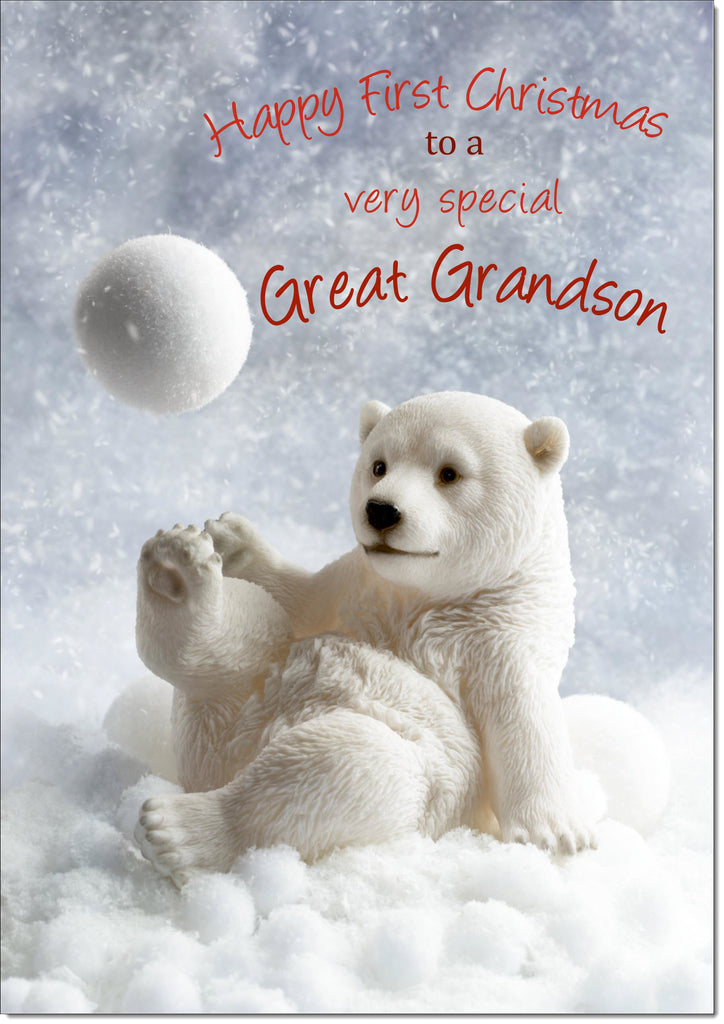 Great Grandsons 1st Christmas Card Polar Bear and Snowball