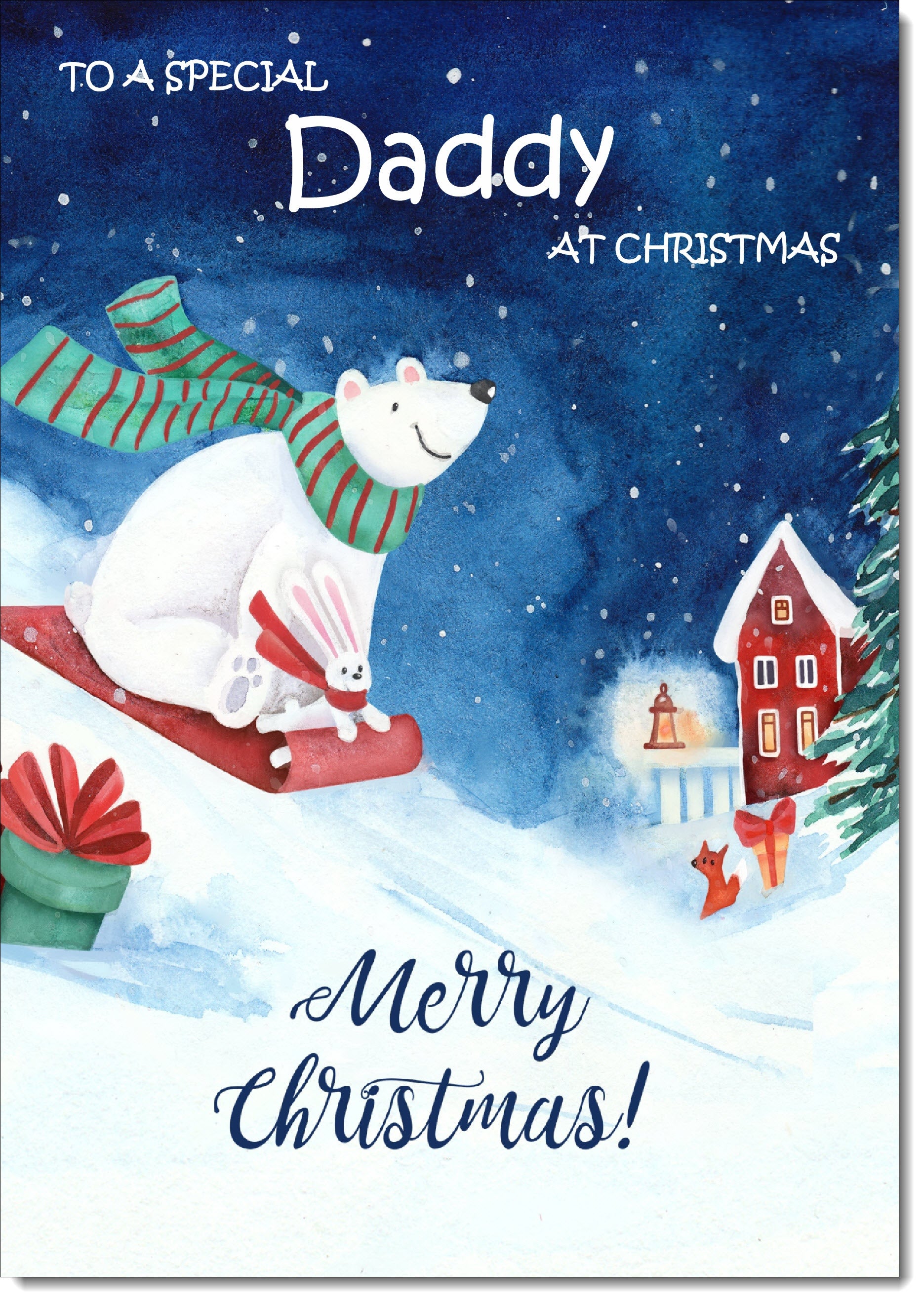 Daddy Christmas Card Polar Bear on Sled