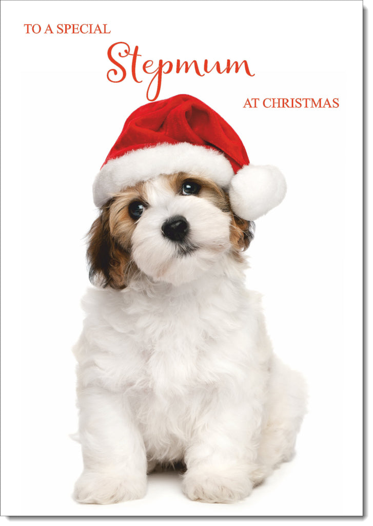 Stepmum Christmas Card Dog and Santa Hat