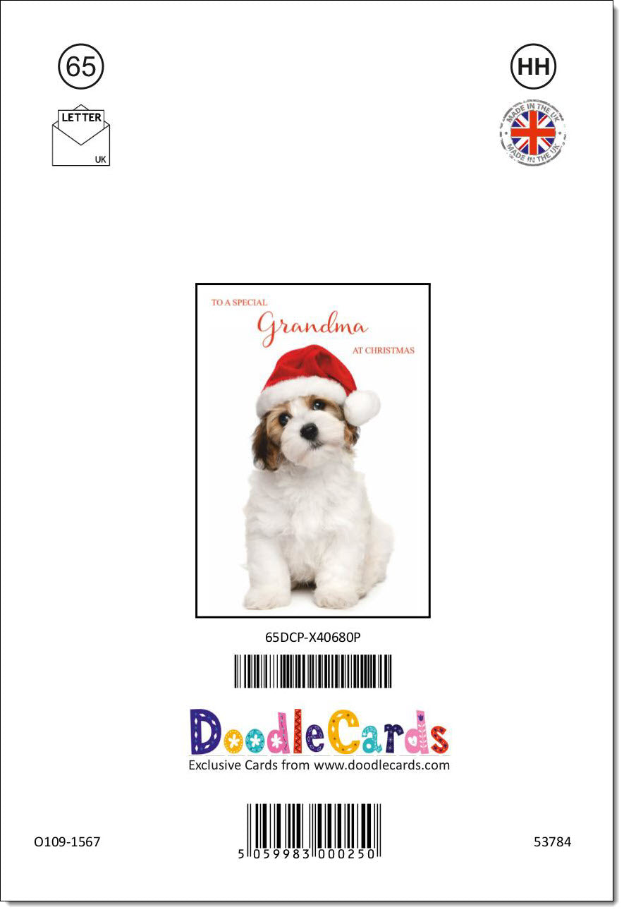 Grandma Christmas Card Dog and Santa Hat