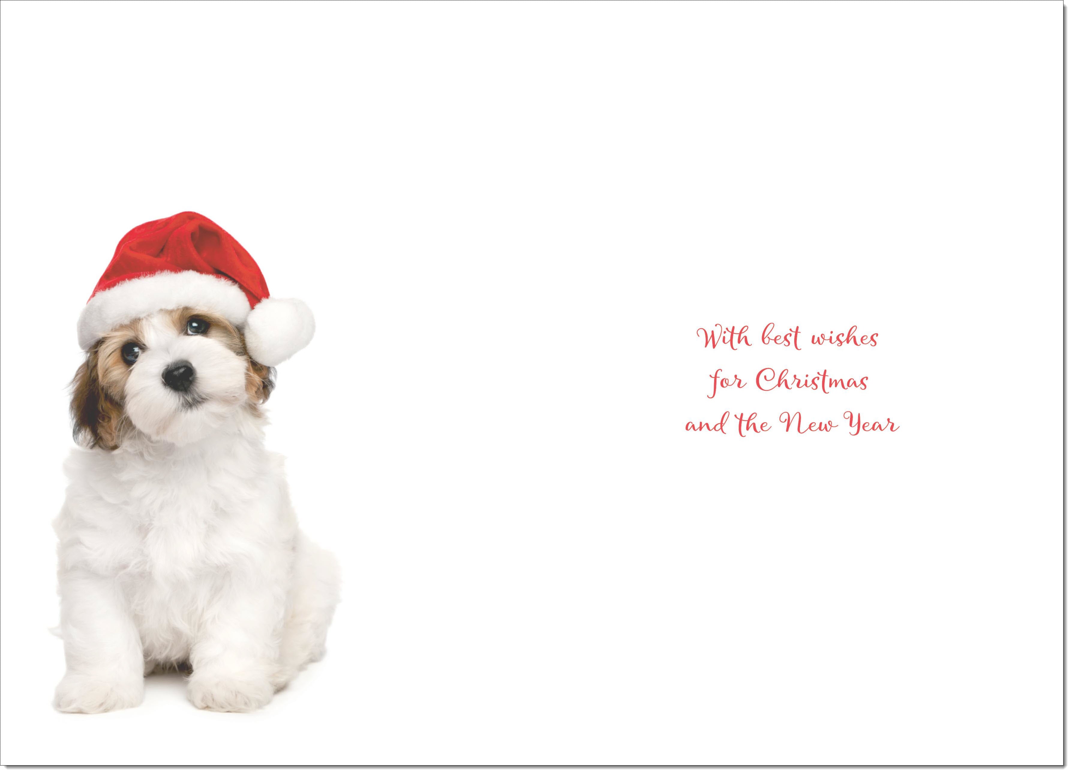 Christmas Wishes Christmas Card Dog and Santa Hat