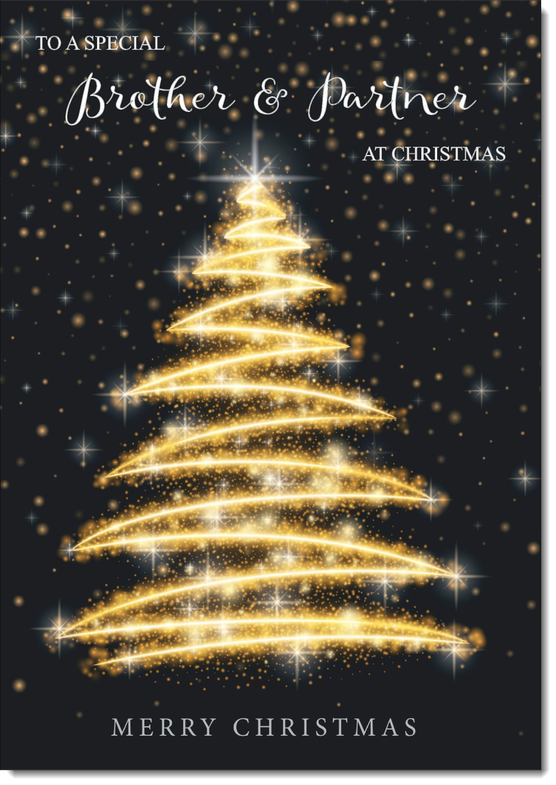 Brother & Partner Christmas Card Black and Gold Abstract Tree