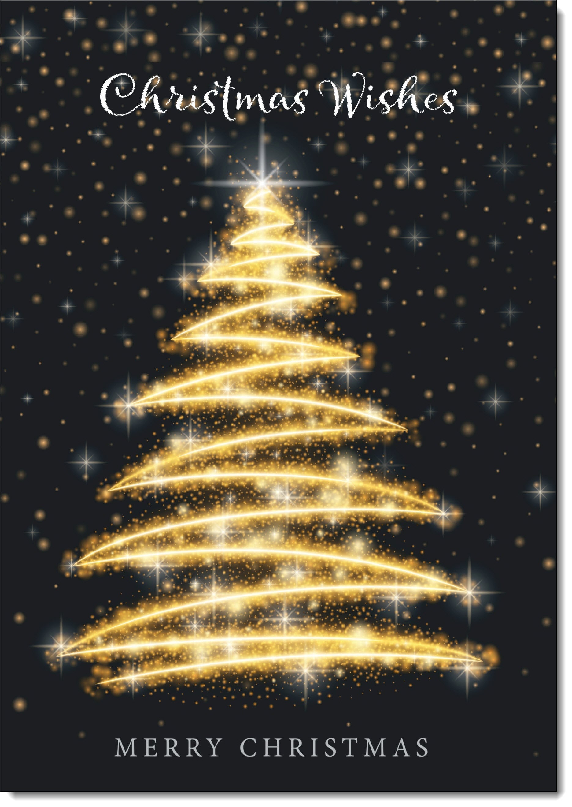Christmas Wishes Christmas Card Black and Gold Abstract Tree