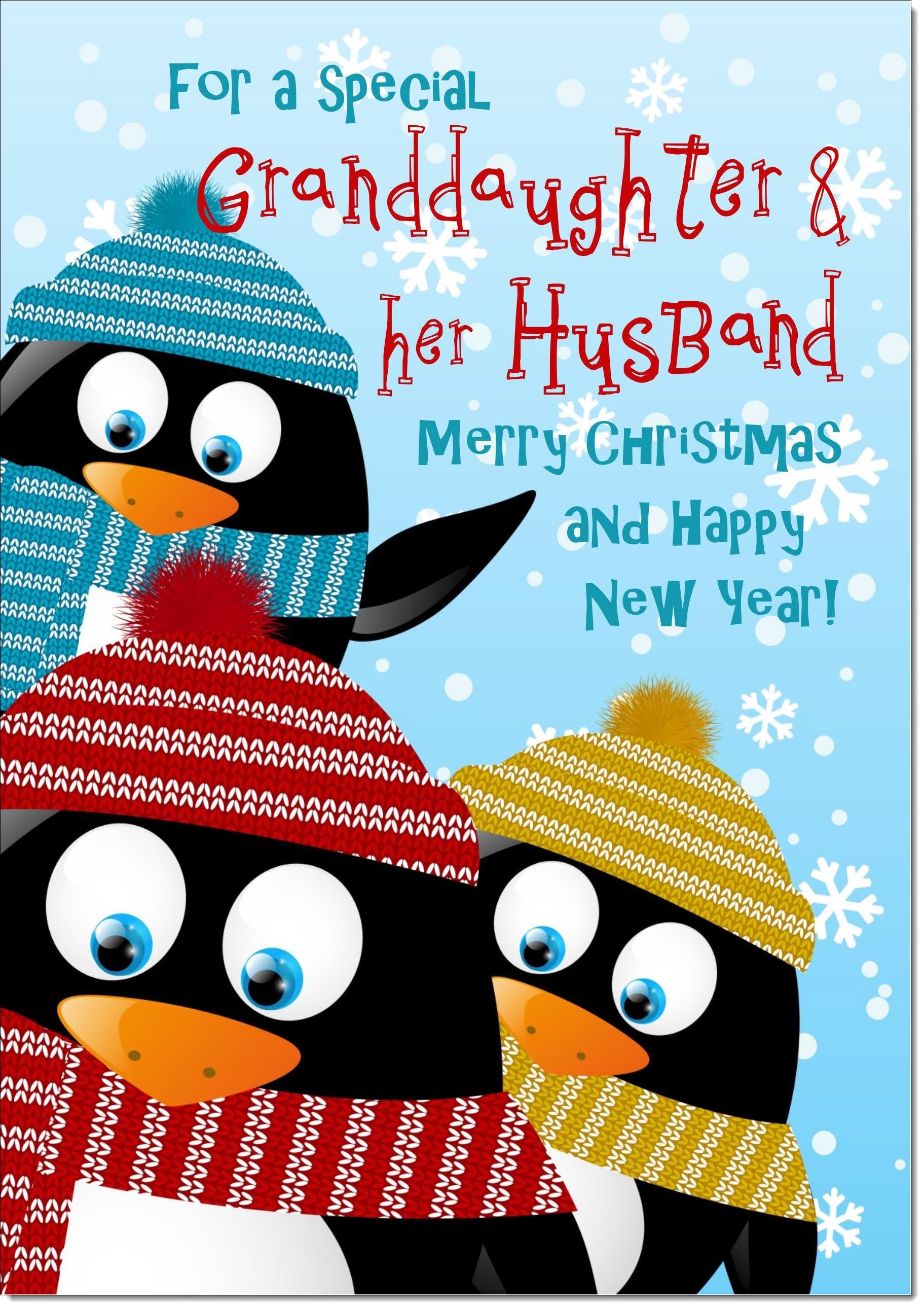 Granddaughter & Husband Christmas Card Three Penquins