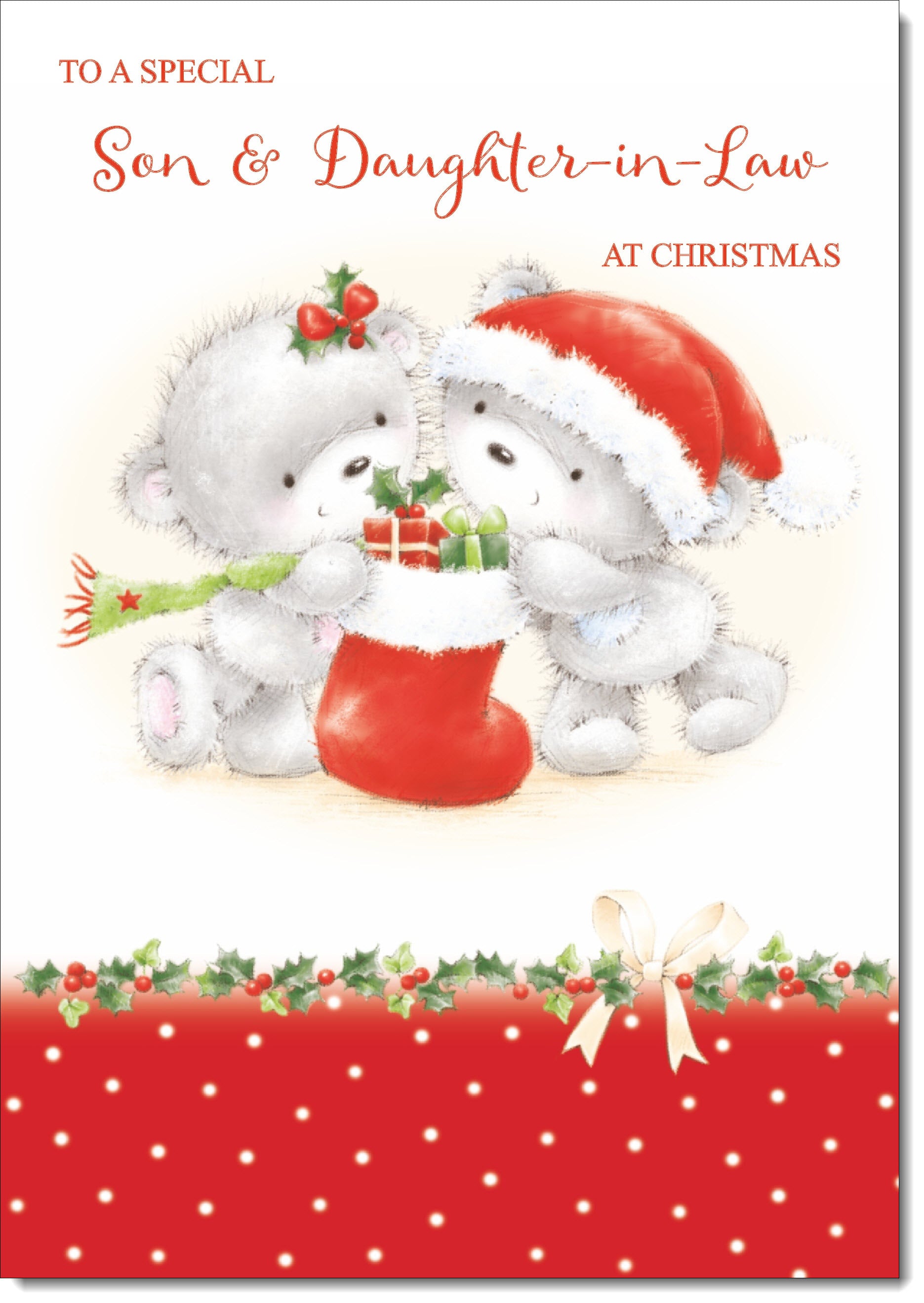 Son & Daughter-in-Law Christmas Card Cute Bears with Stocking
