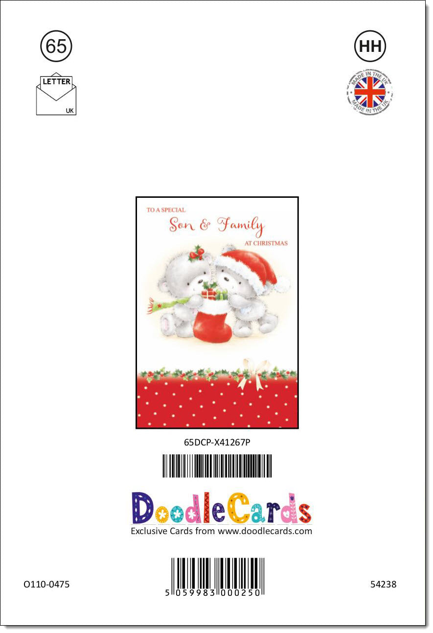 Son & Family Christmas Card Cute Bears with Stocking