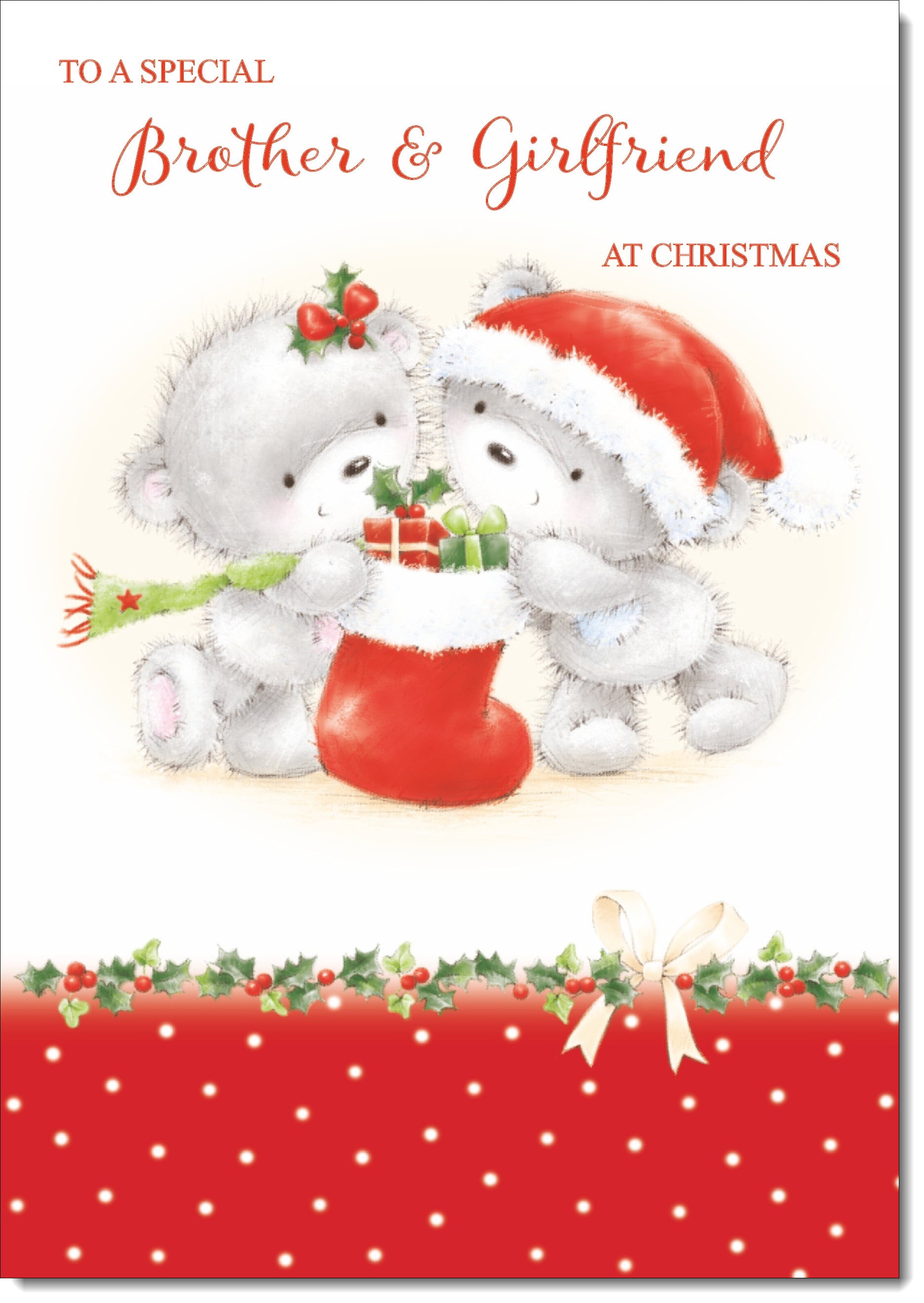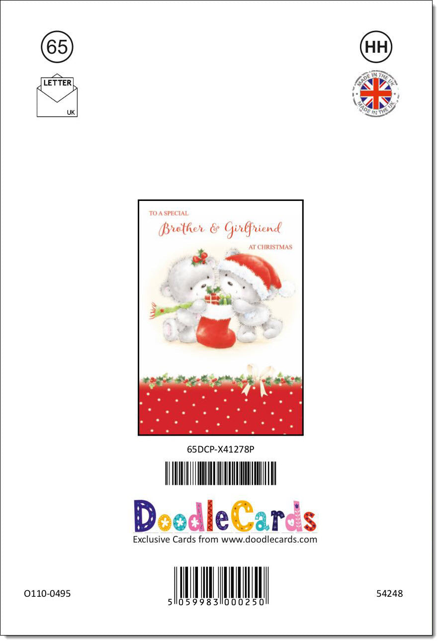 Brother & Girlfriend Christmas Card Cute Bears with Stocking