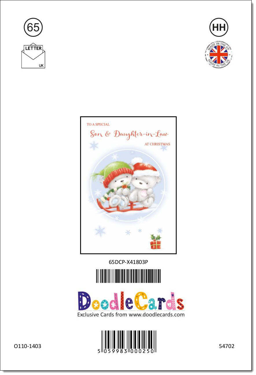 Son & Daughter-in-Law Christmas Card Cute Bears on Sled