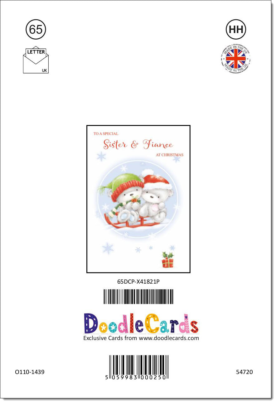 Sister & Fiance Christmas Card Cute Bears on Sled