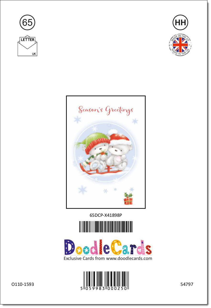 Seasons Greetings Christmas Card Cute Bears on Sled