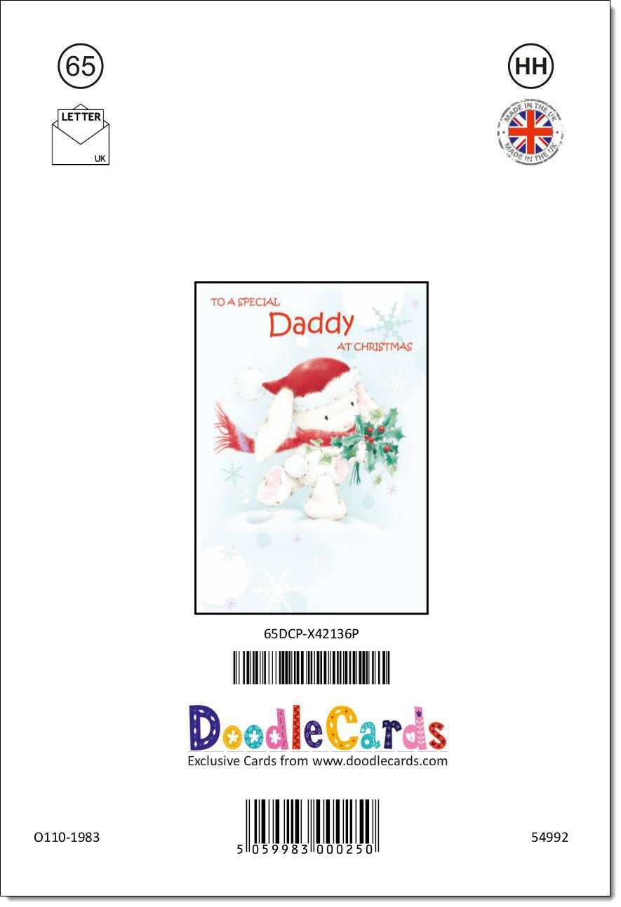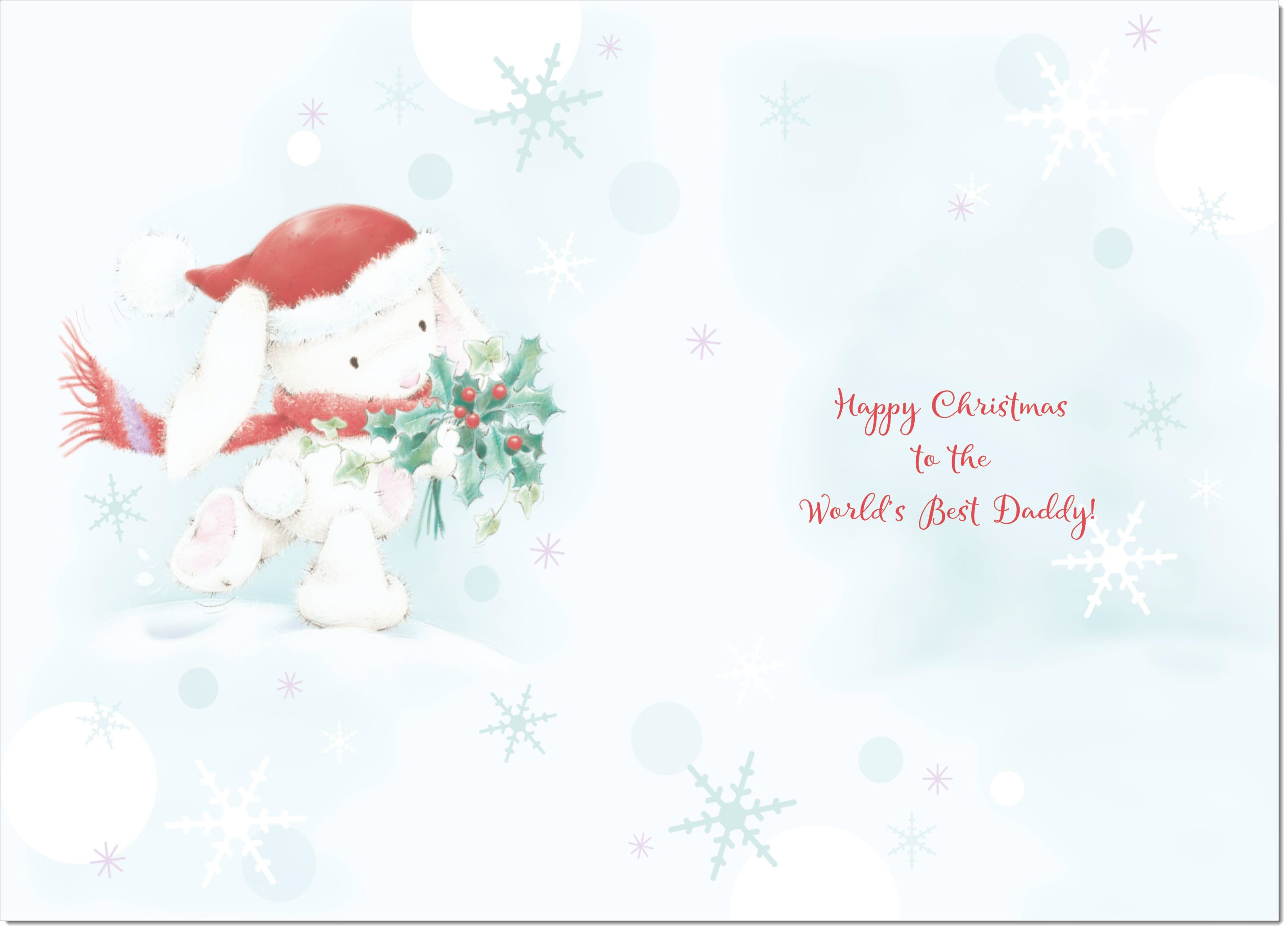 Daddy Christmas Card Cute Rabbit with Holly