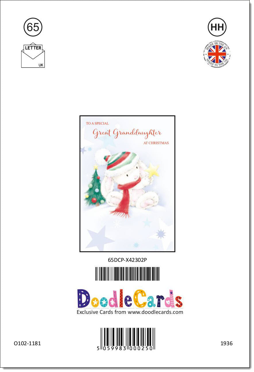 Great Granddaughter Christmas Card Cute Rabbit with Star