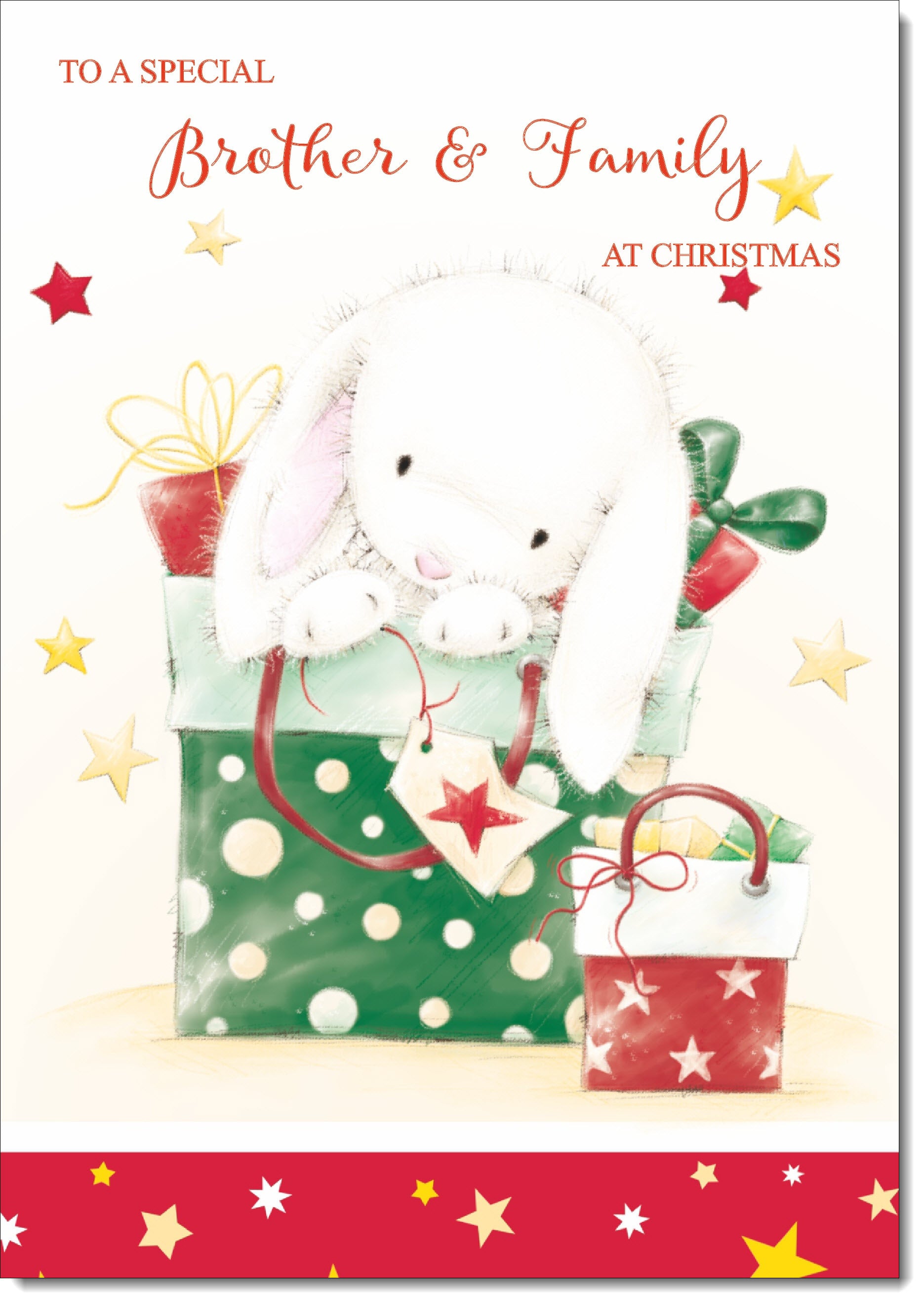 Brother & Family Christmas Card Cute Rabbit with Parcels