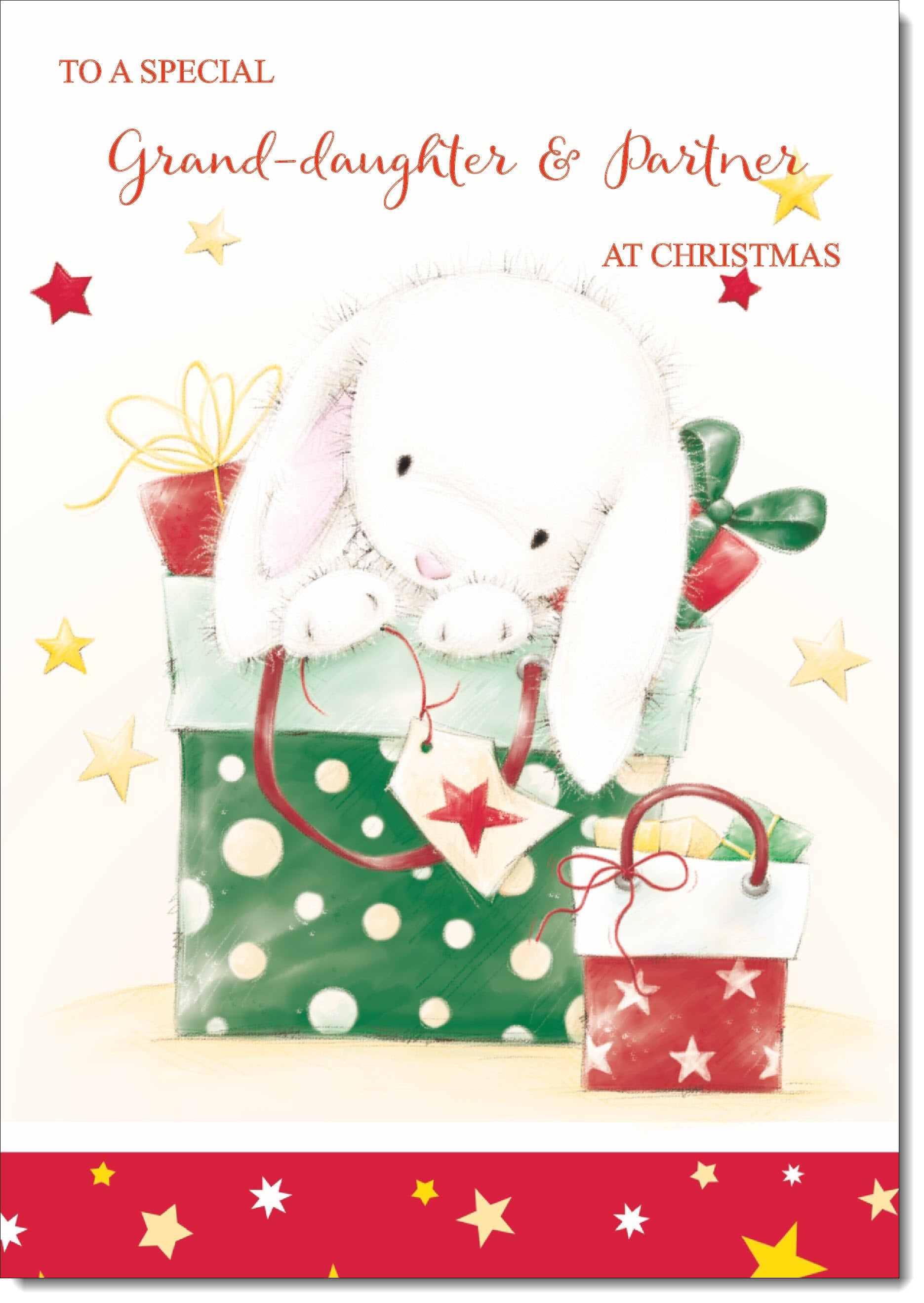 Granddaughter & Partner Christmas Card Cute Rabbit with Parcels