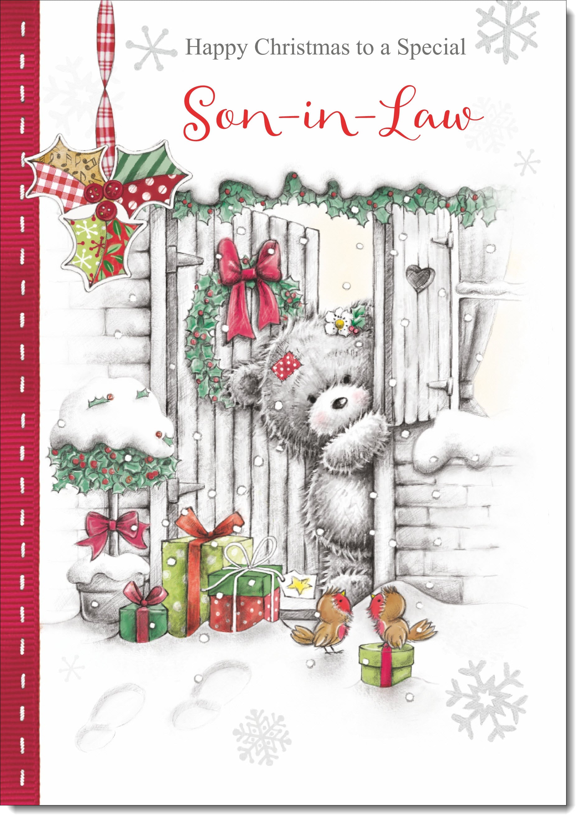 Son-in-Law Christmas Card Grey Bear in Snow
