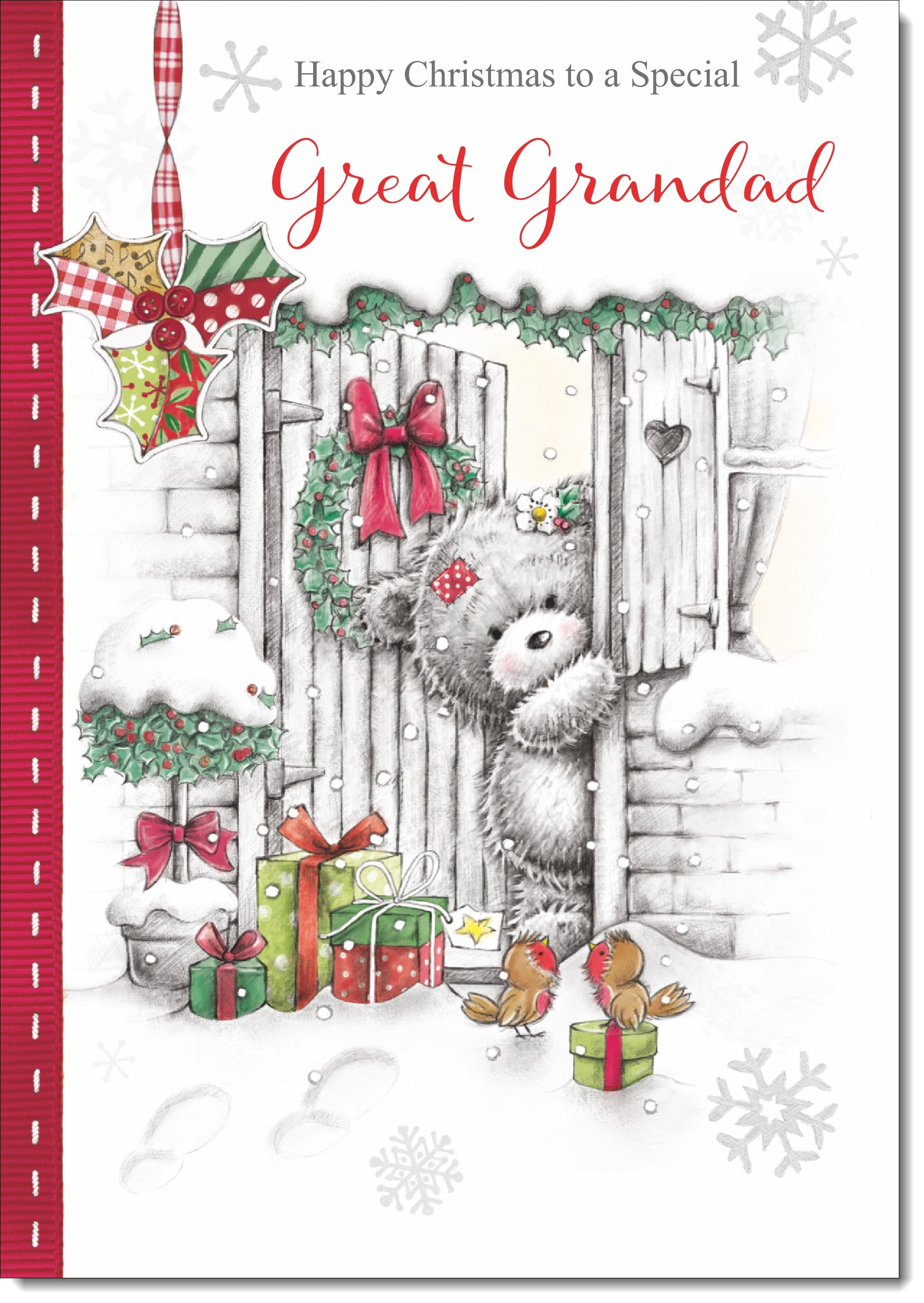 Great Grandad Christmas Card Grey Bear in Snow