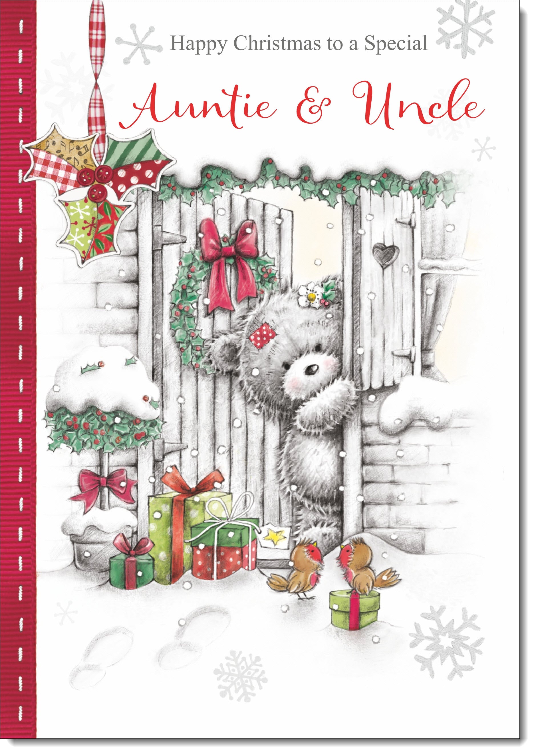 Auntie & Uncle Christmas Card Grey Bear in Snow