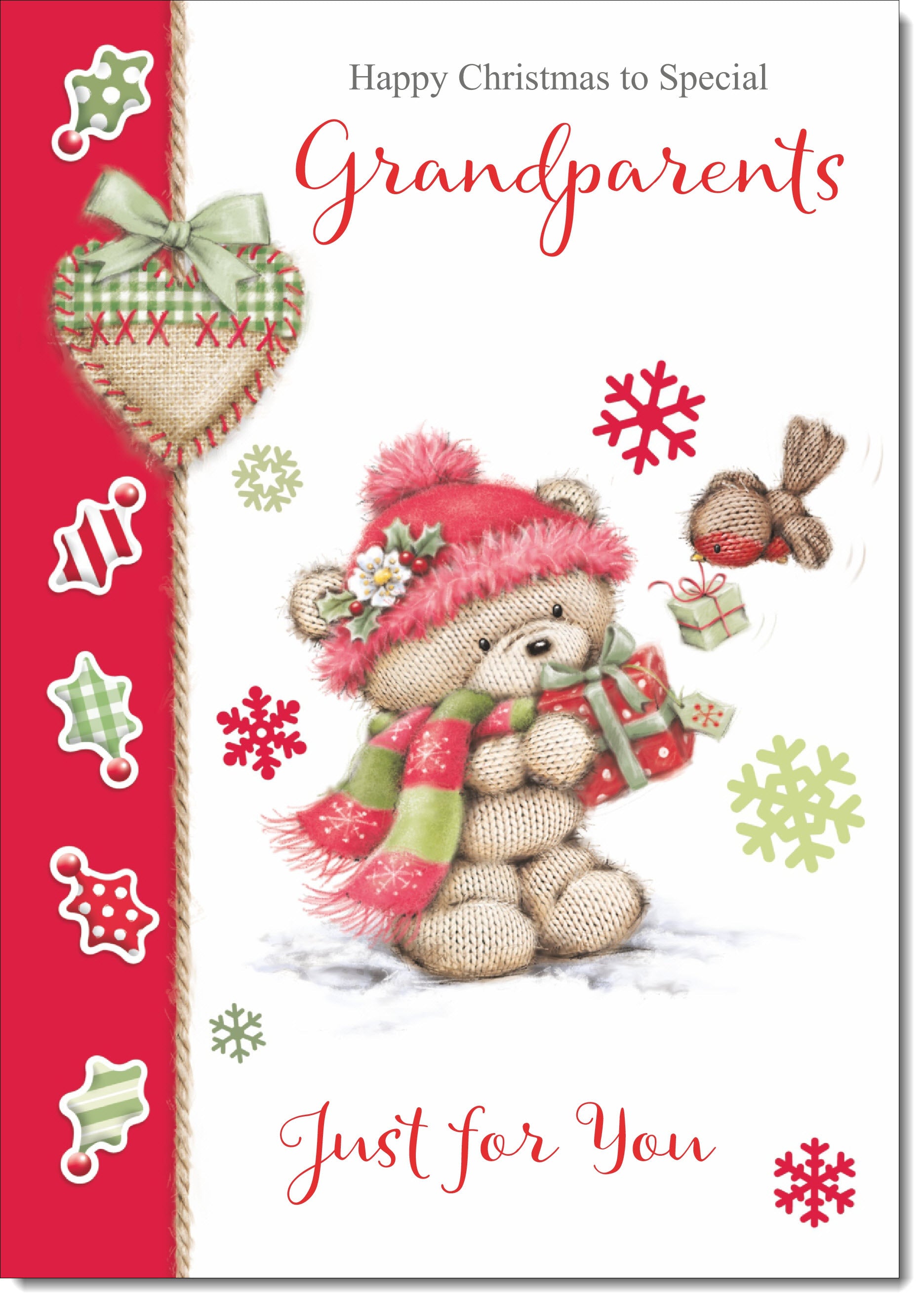 Grandparents Christmas Card Cute Bear in Pink Bobble Hat