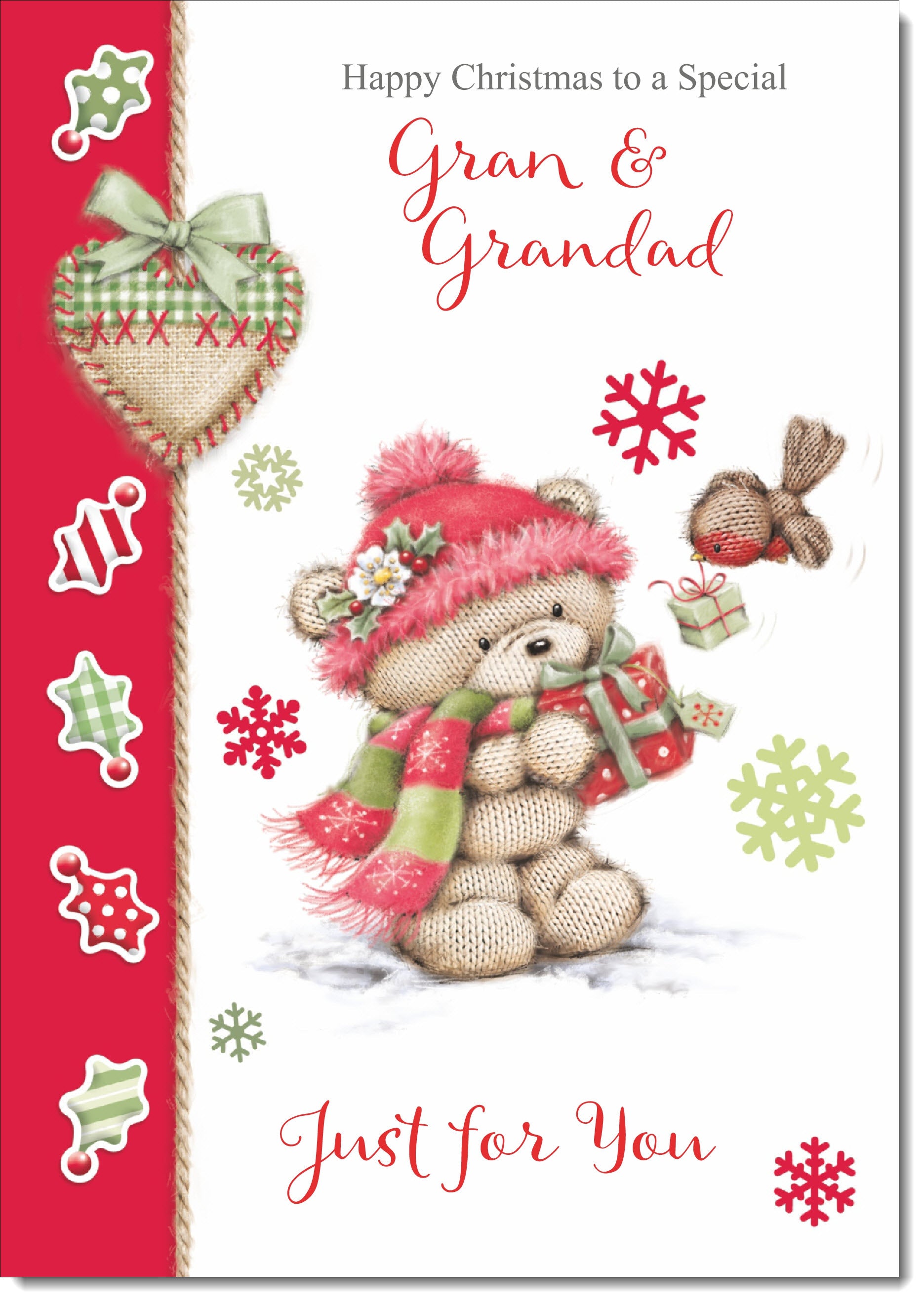Gran & Grandad Christmas Card Cute Bear in Pink Bobble Hat