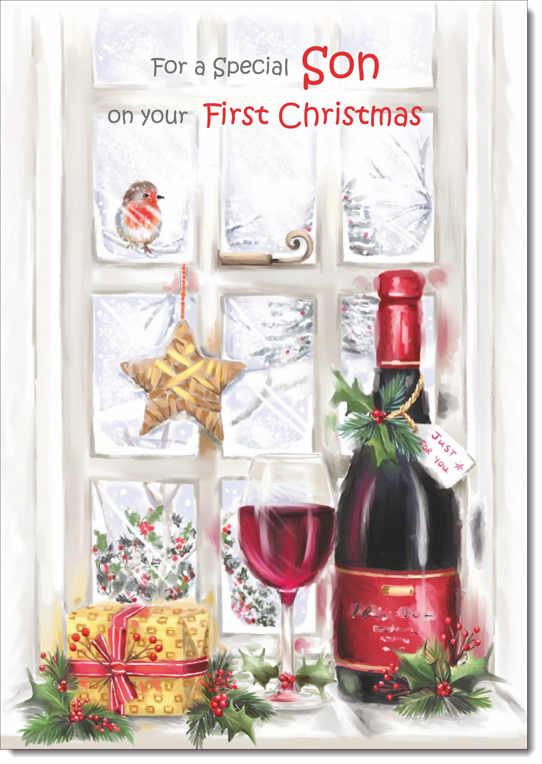 Sons 1st Christmas Card Red Wine Christmas Scene