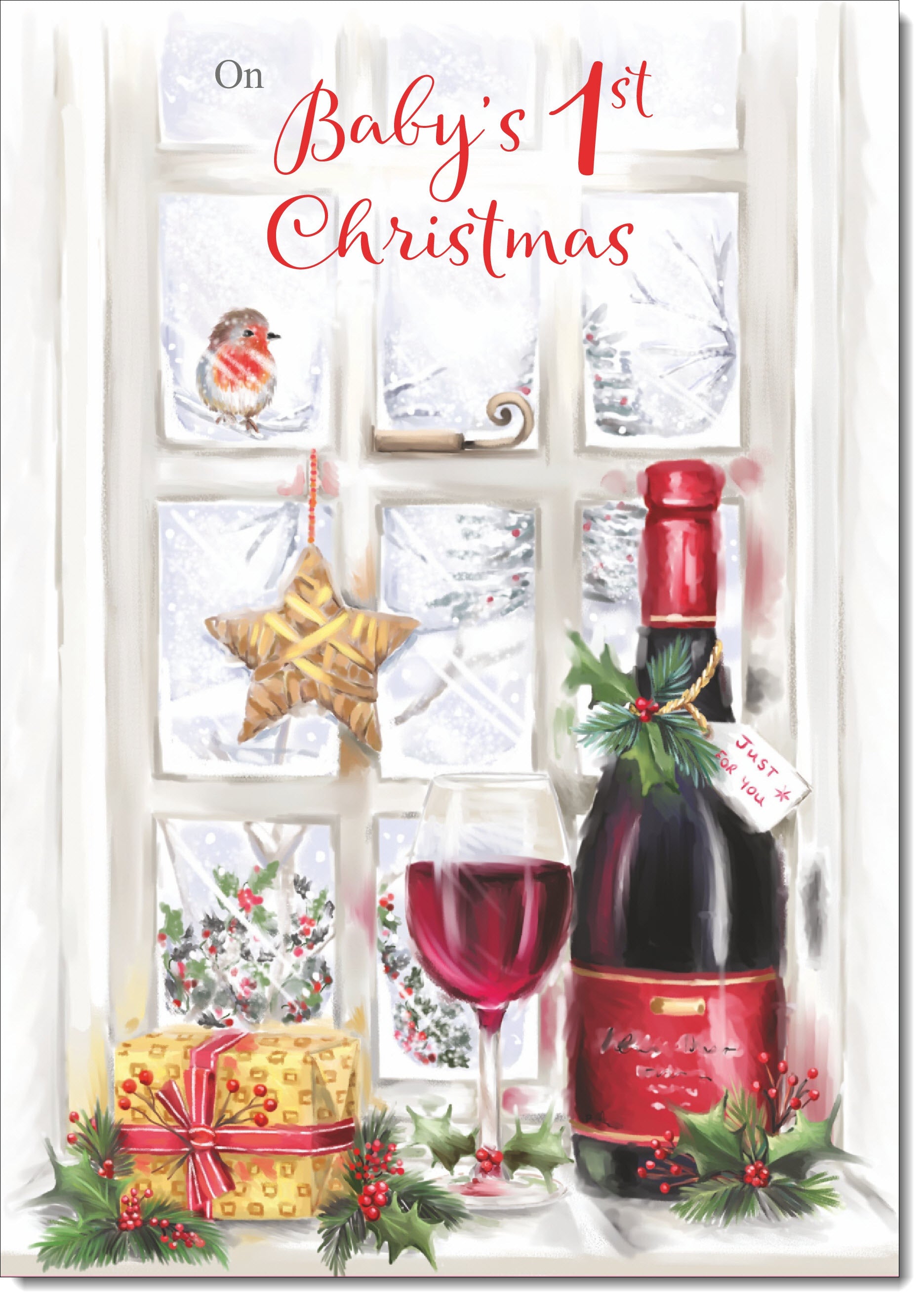 Babys 1st Christmas Card Red Wine Christmas Scene