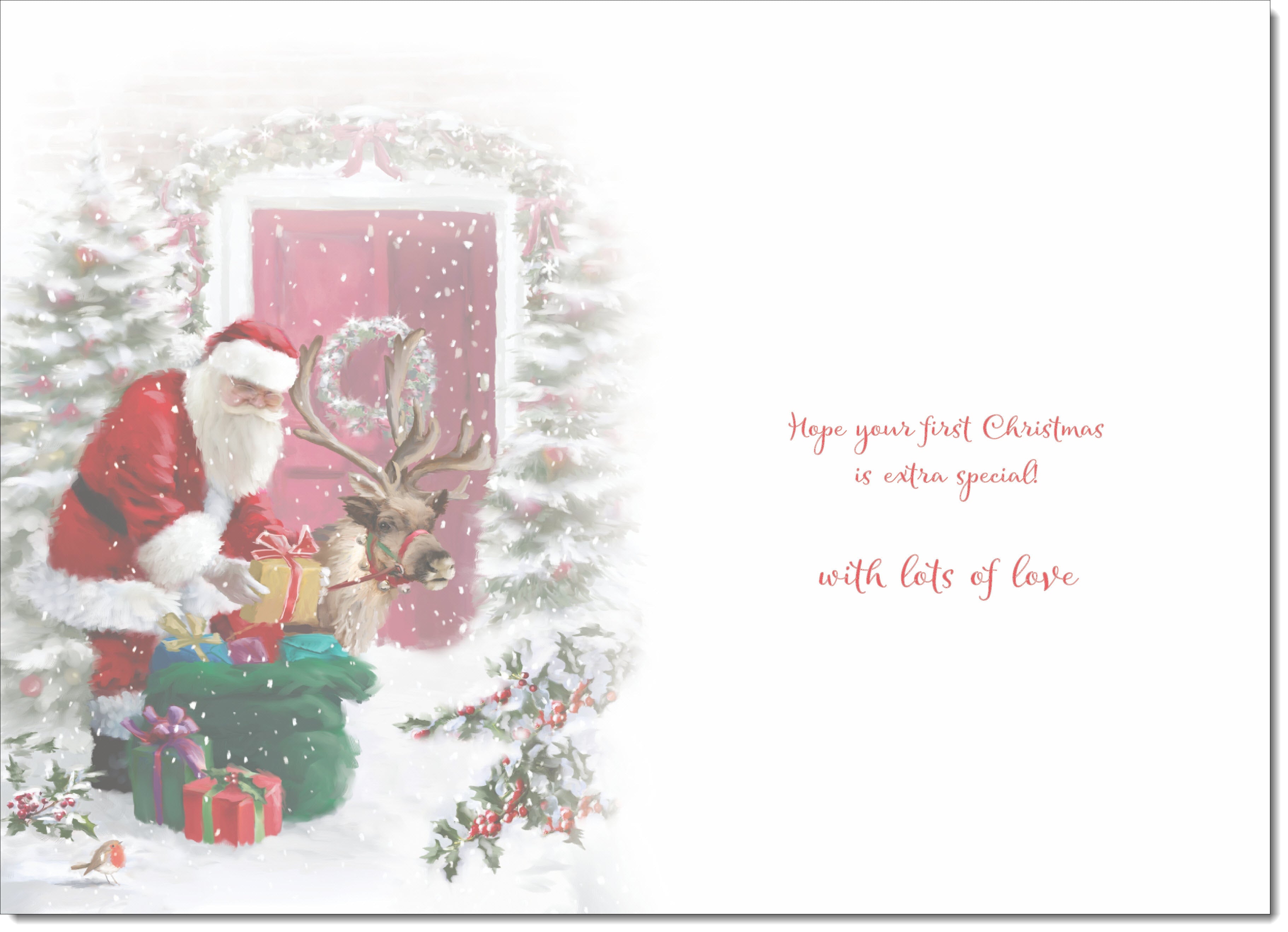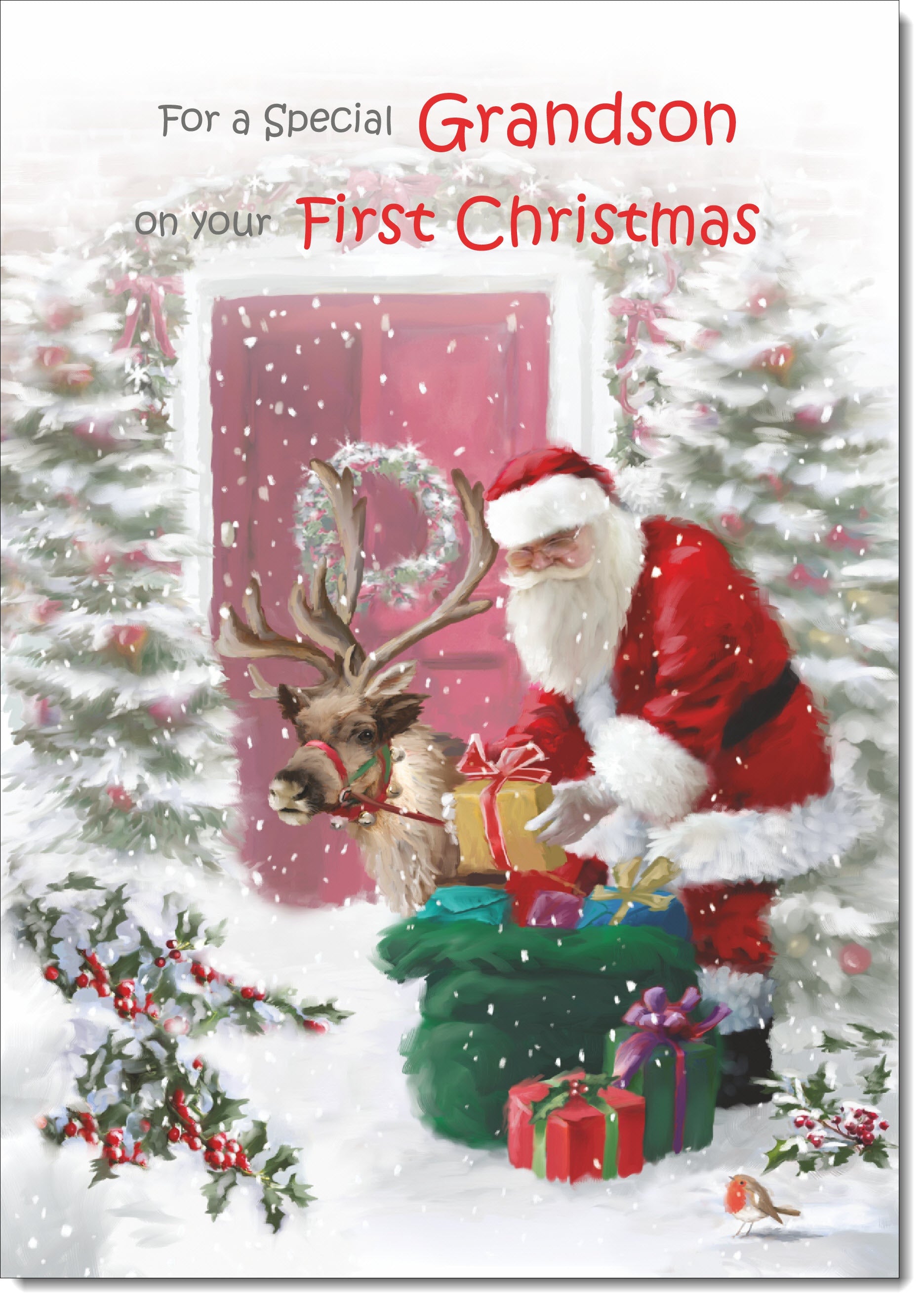 Grandsons 1st Christmas Card Santa's Bag of Presents