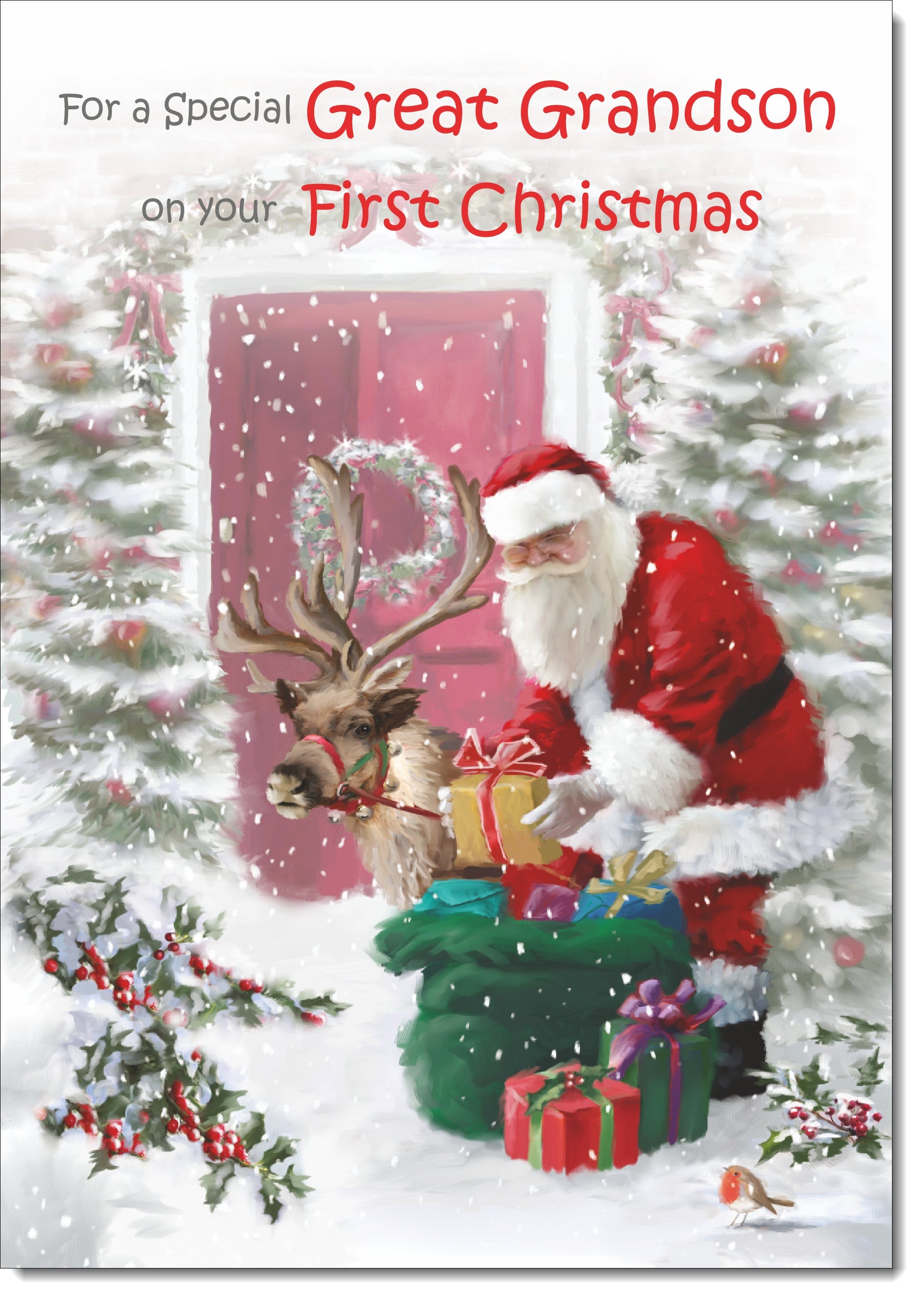 Great Grandsons 1st Christmas Card Santa's Bag of Presents