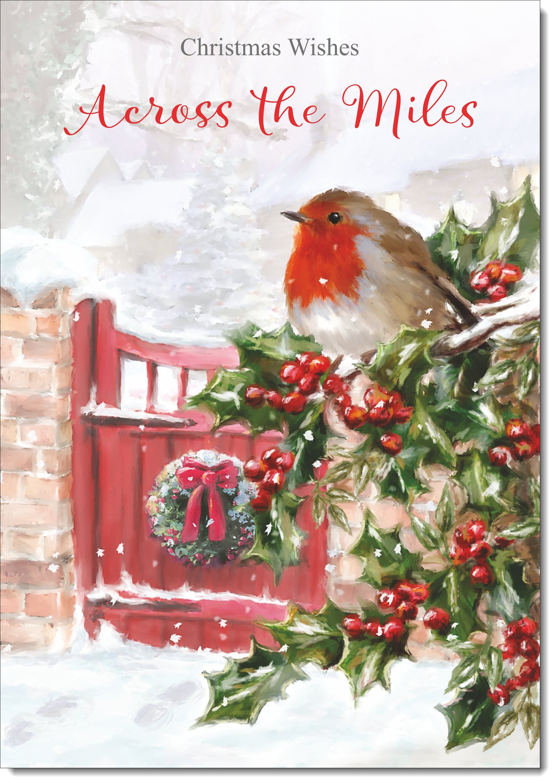Across The Miles Christmas Card Robin on Holly Tree