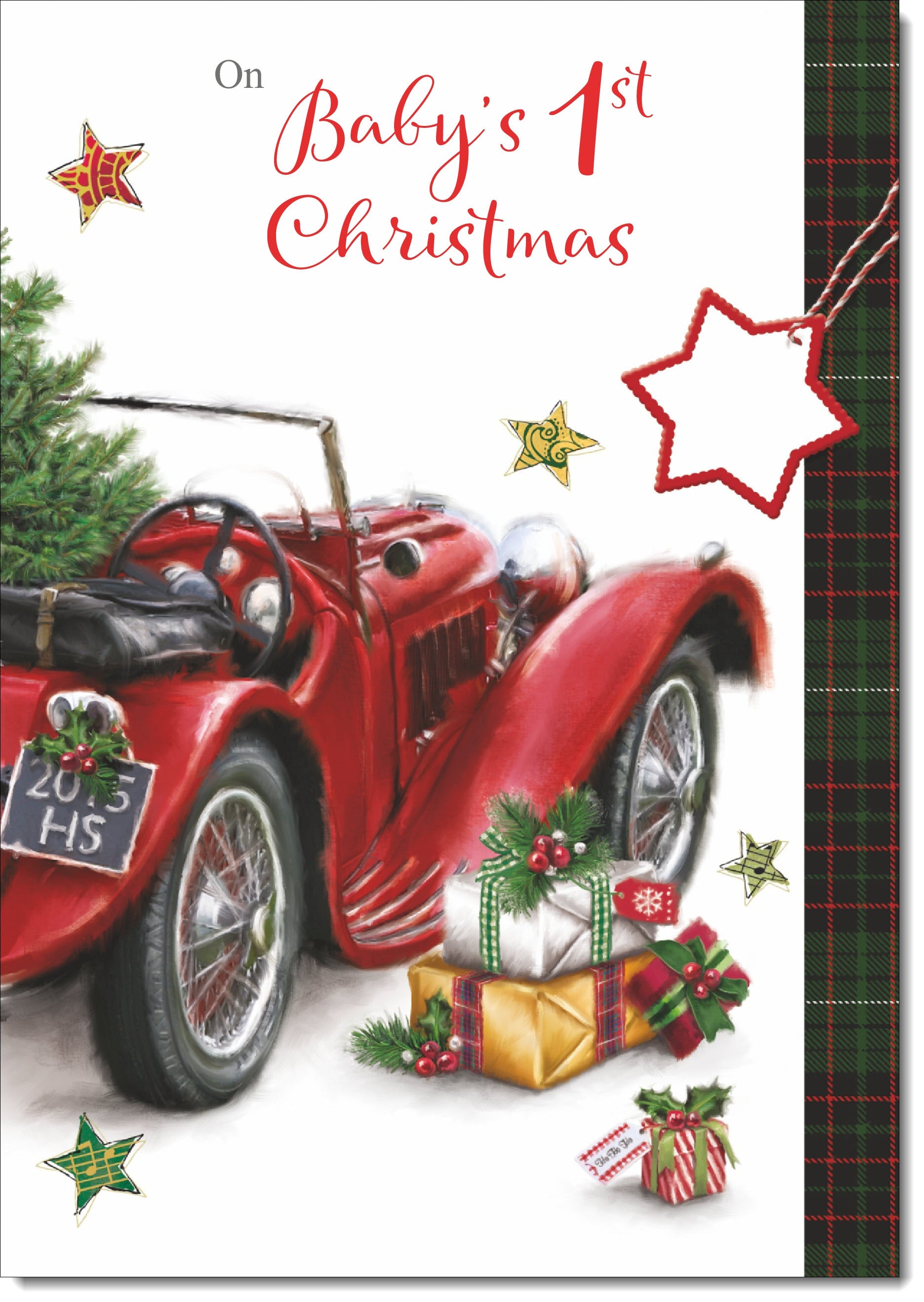 Babys 1st Christmas Card Red Vintage Car