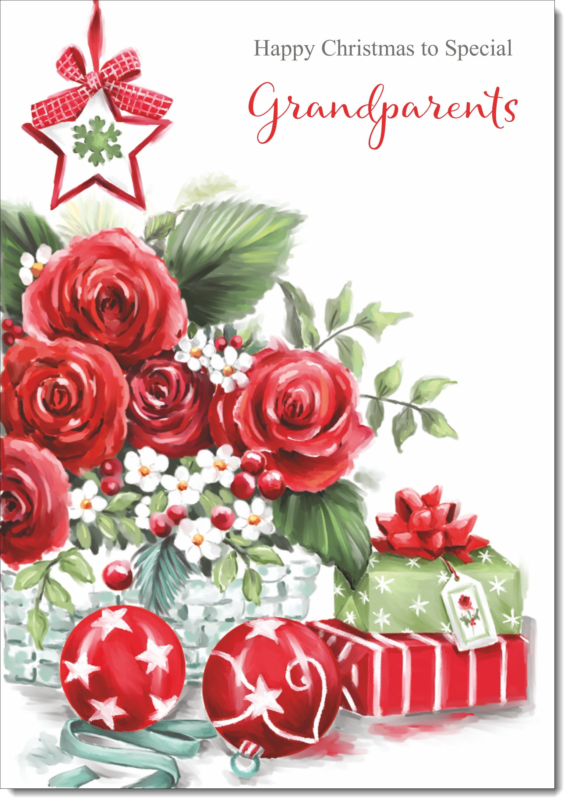Grandparents Christmas Card Red Christmas Roses